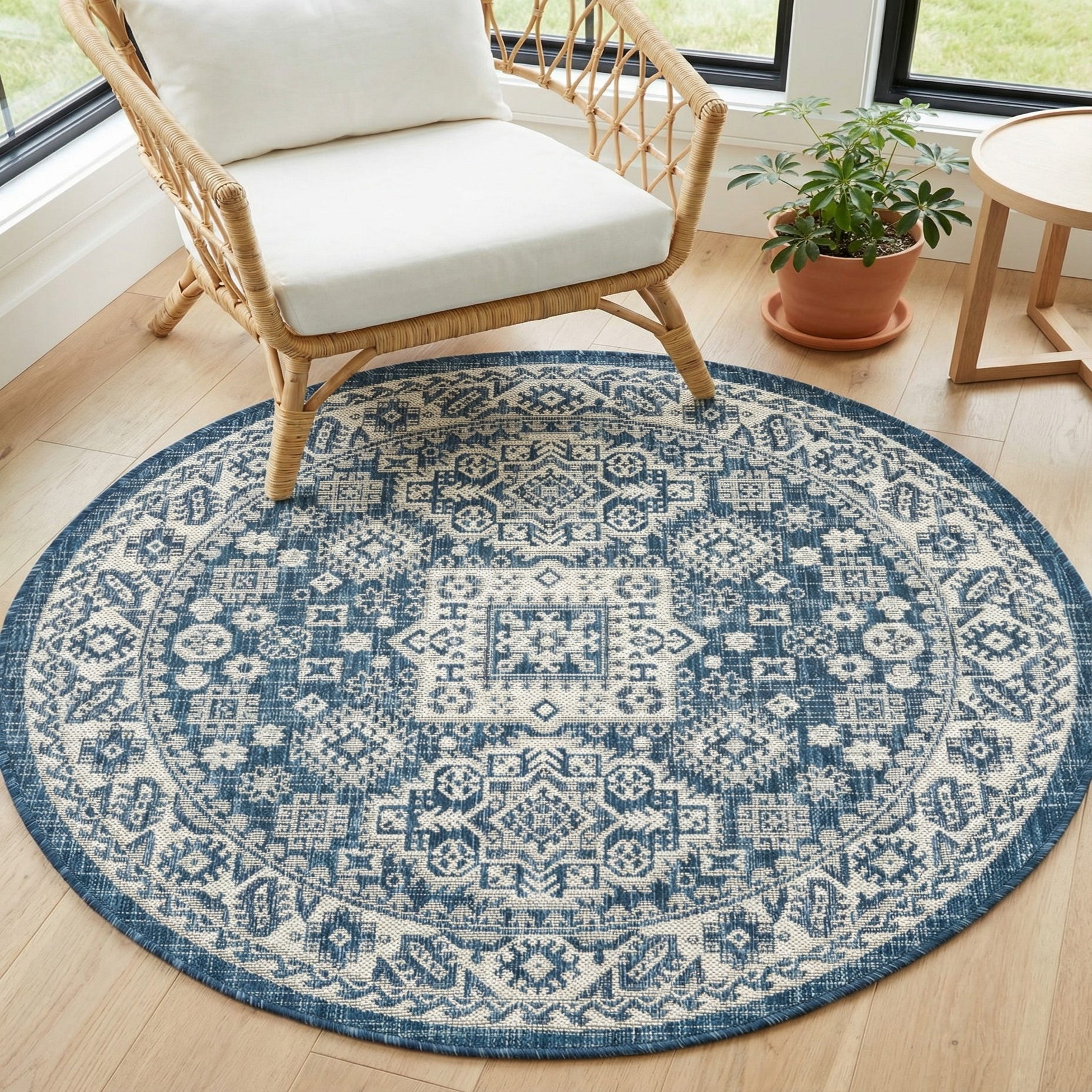 4' x 4' Washable Aztec Indoor / Outdoor Round Rug