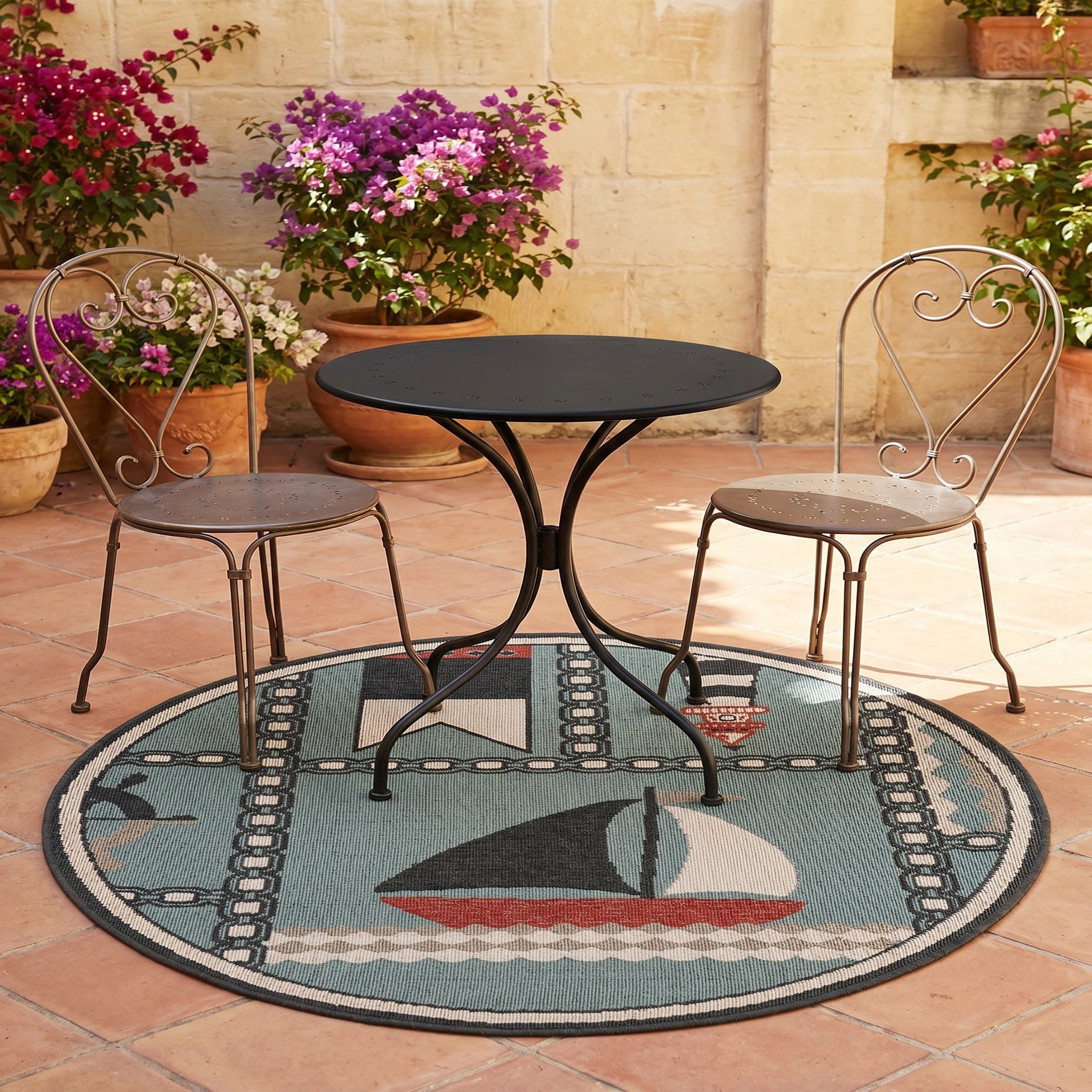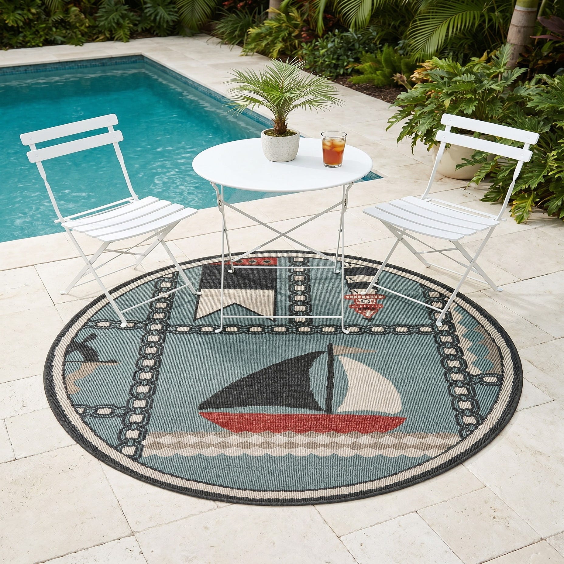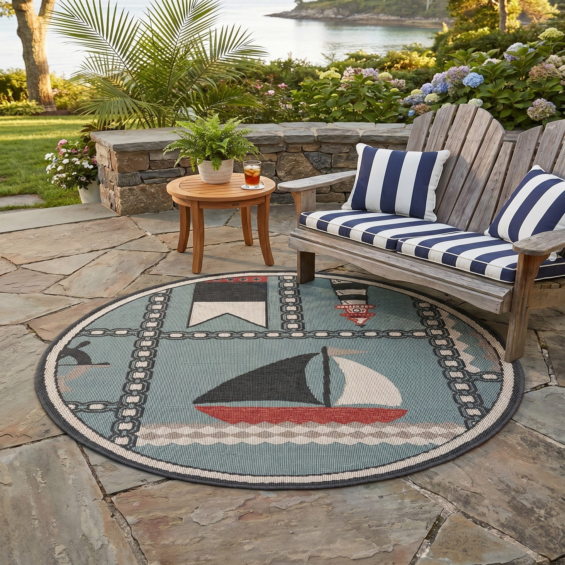 4' x 4' Easy-Clean Coastal Indoor / Outdoor Round Rug