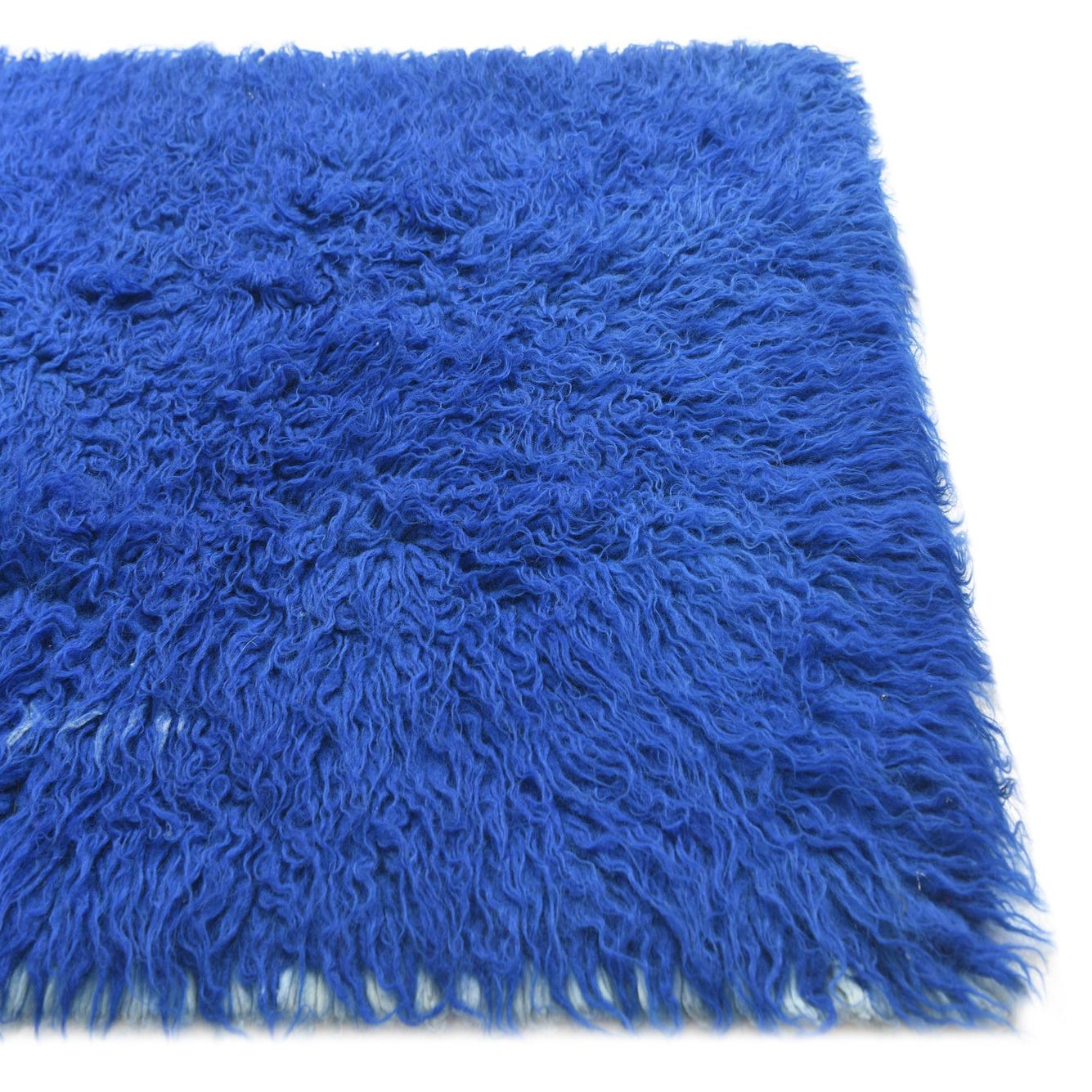 A vibrant blue 4 ft runner rug with a plush, shaggy texture, perfect for a hallway.