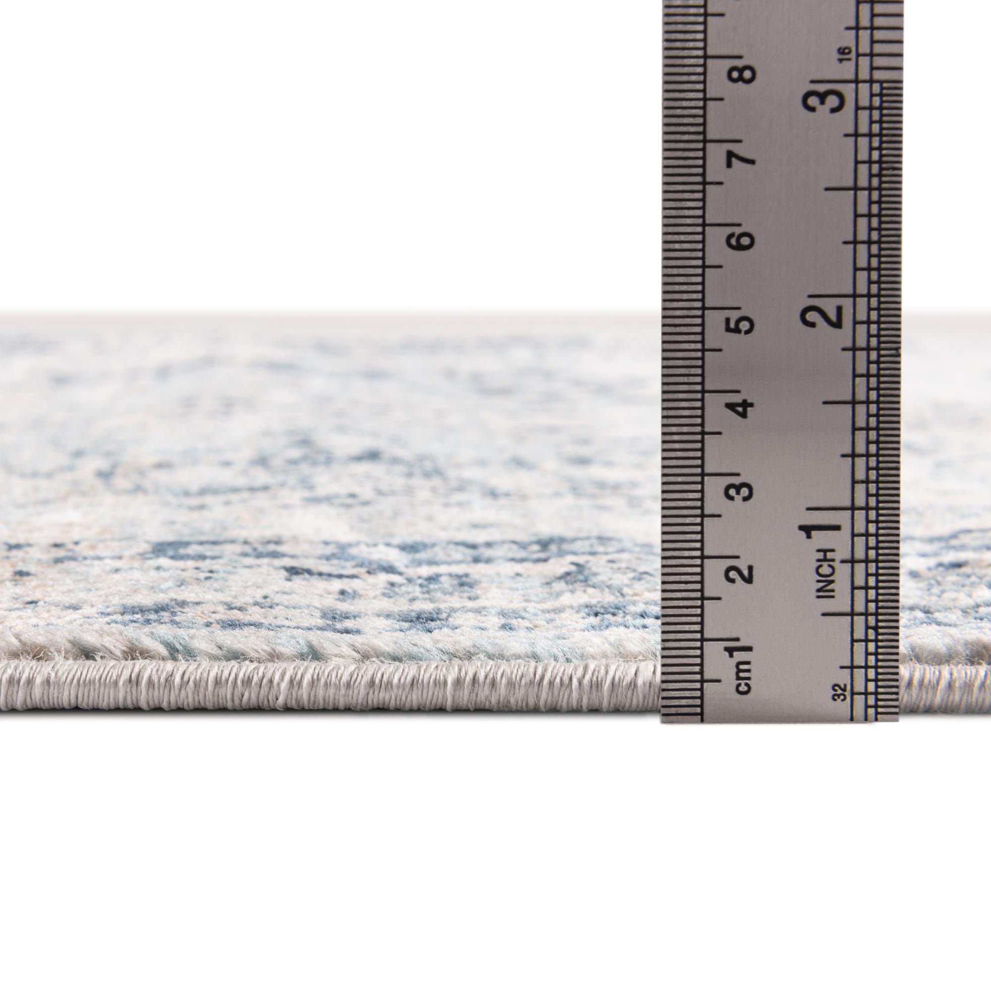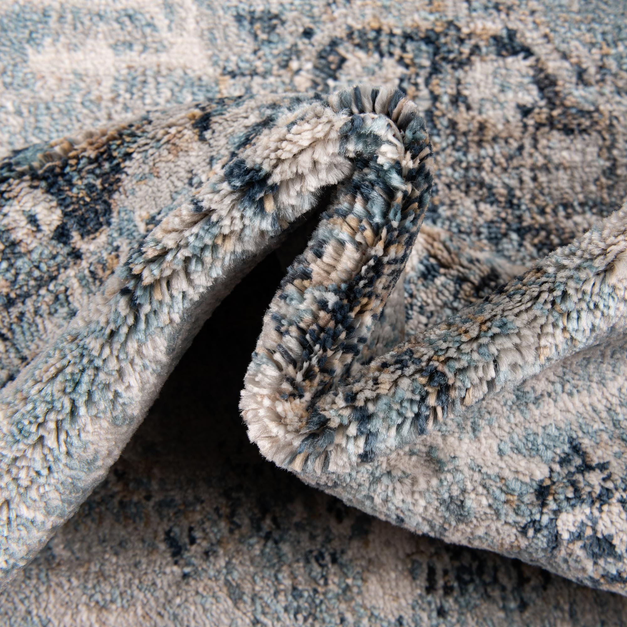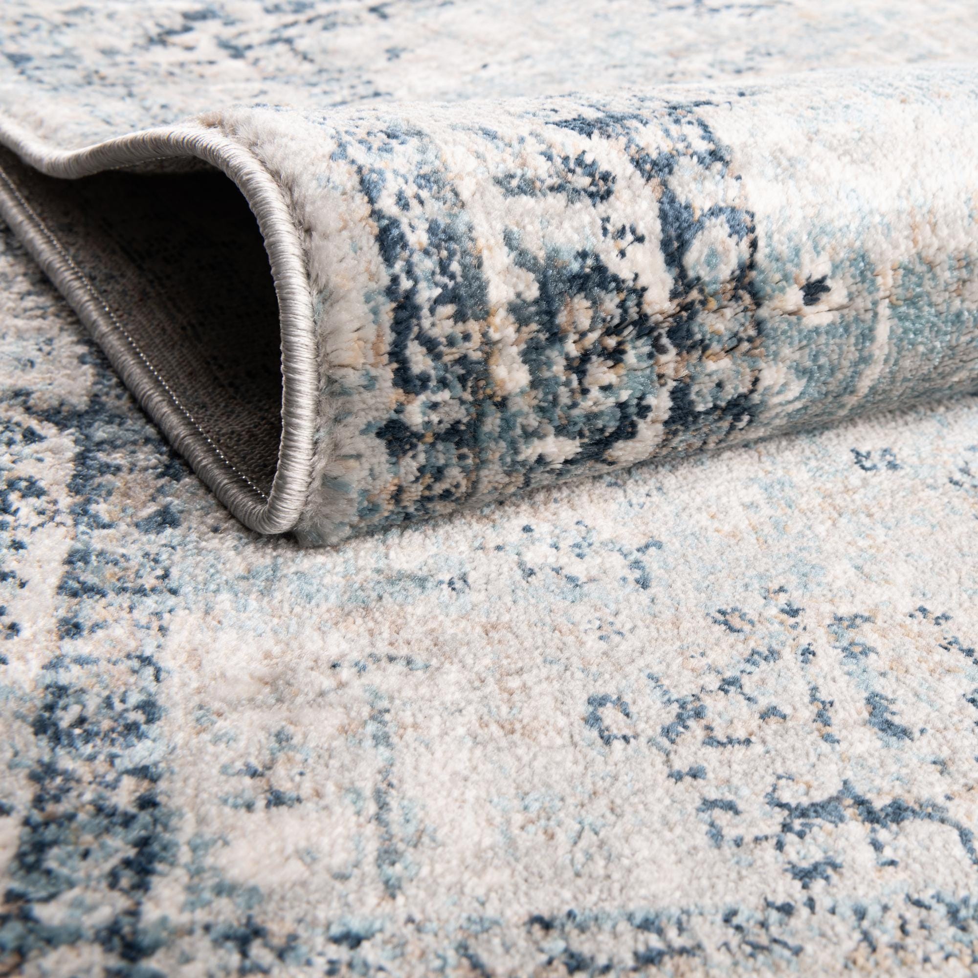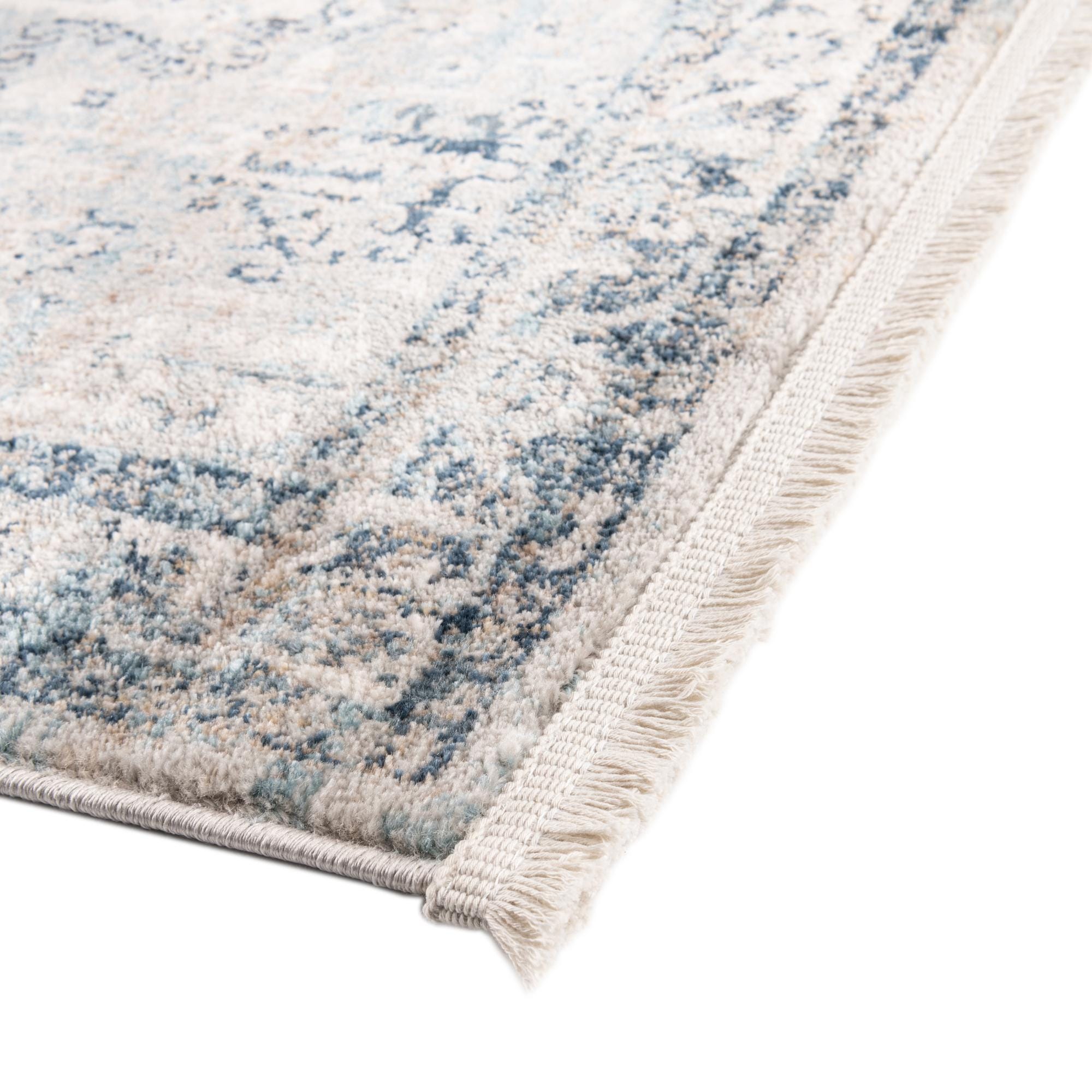Primary color is Blue. Colors in this rug include: Blue, Ivory, Light Blue, Beige, Navy Blue.