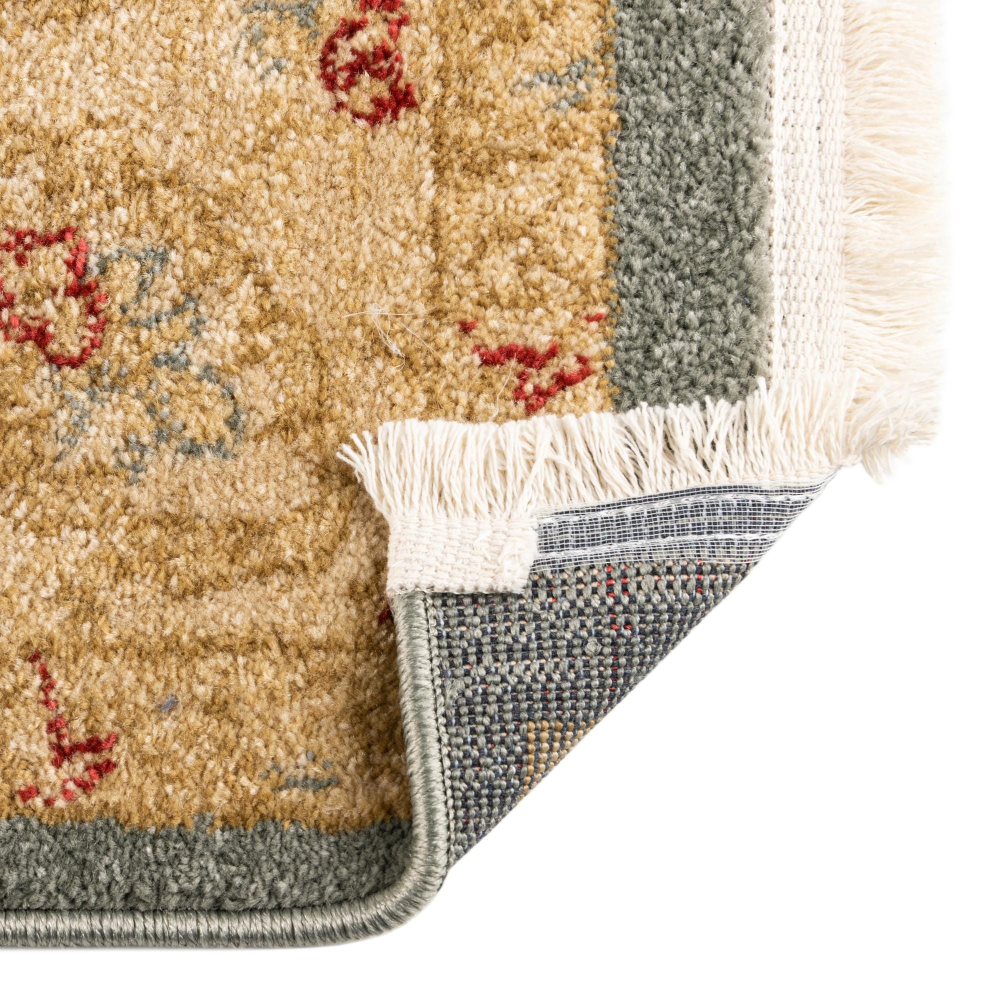 Primary color is Blue. Colors in this rug include: Blue, Beige, Cream, Light Brown, Red.