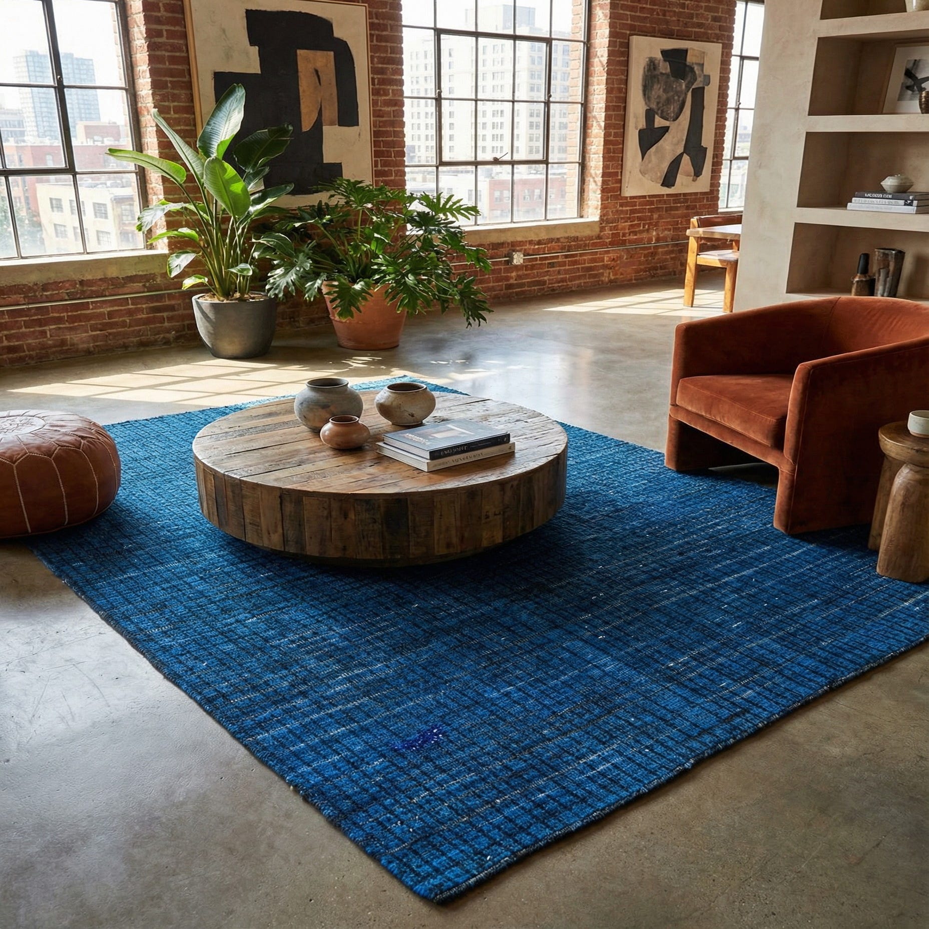 Primary color is Blue. Colors in this rug include: Blue, Black.