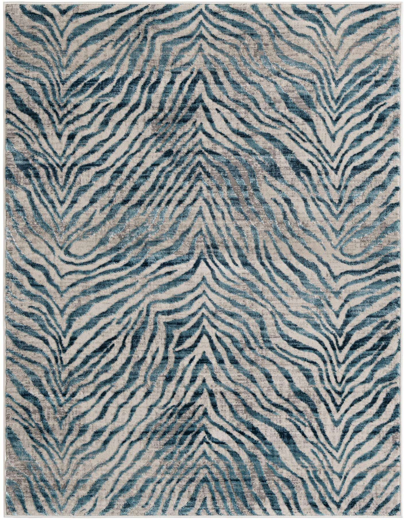 Primary color is Blue. Colors in this rug include: Blue, Ivory, Gray.