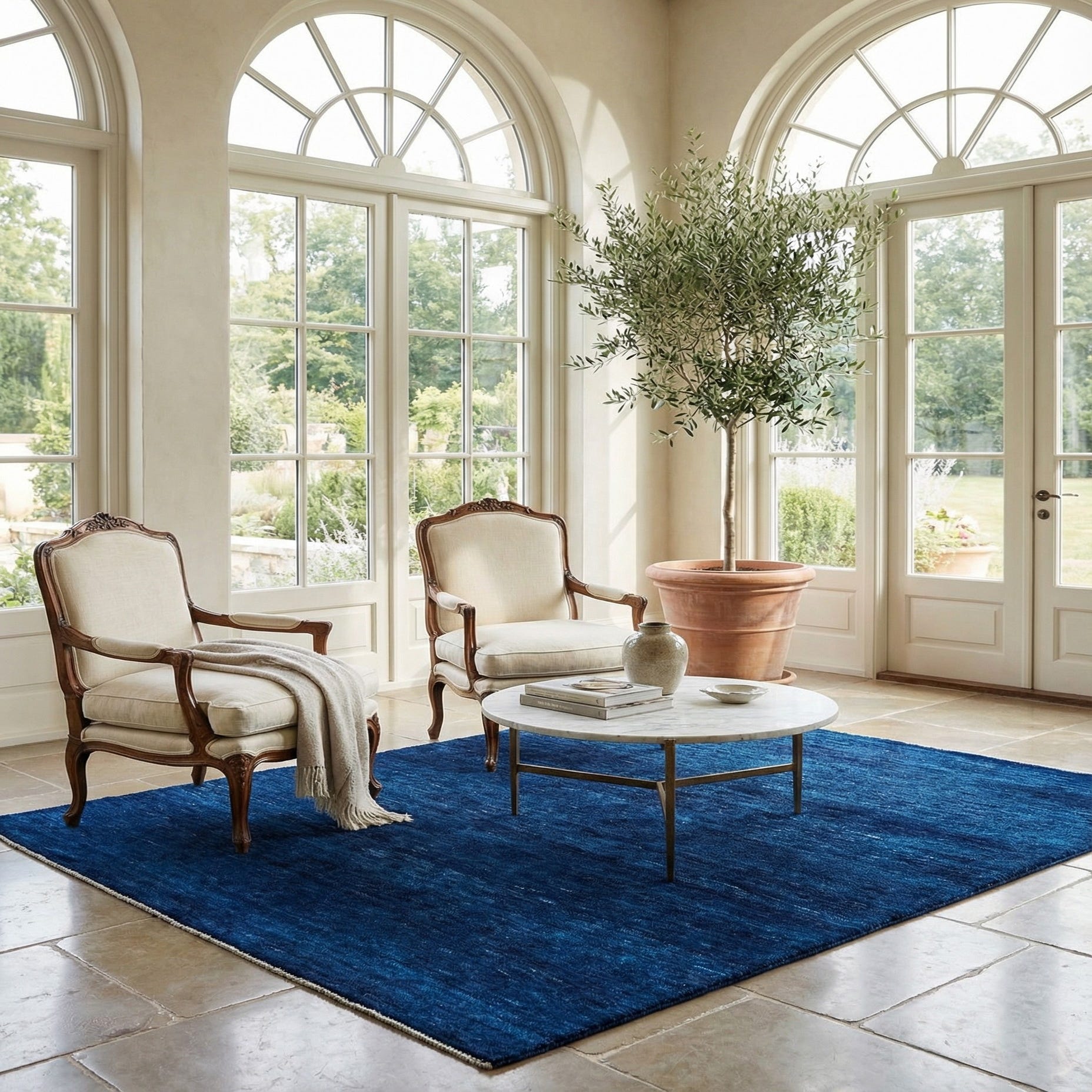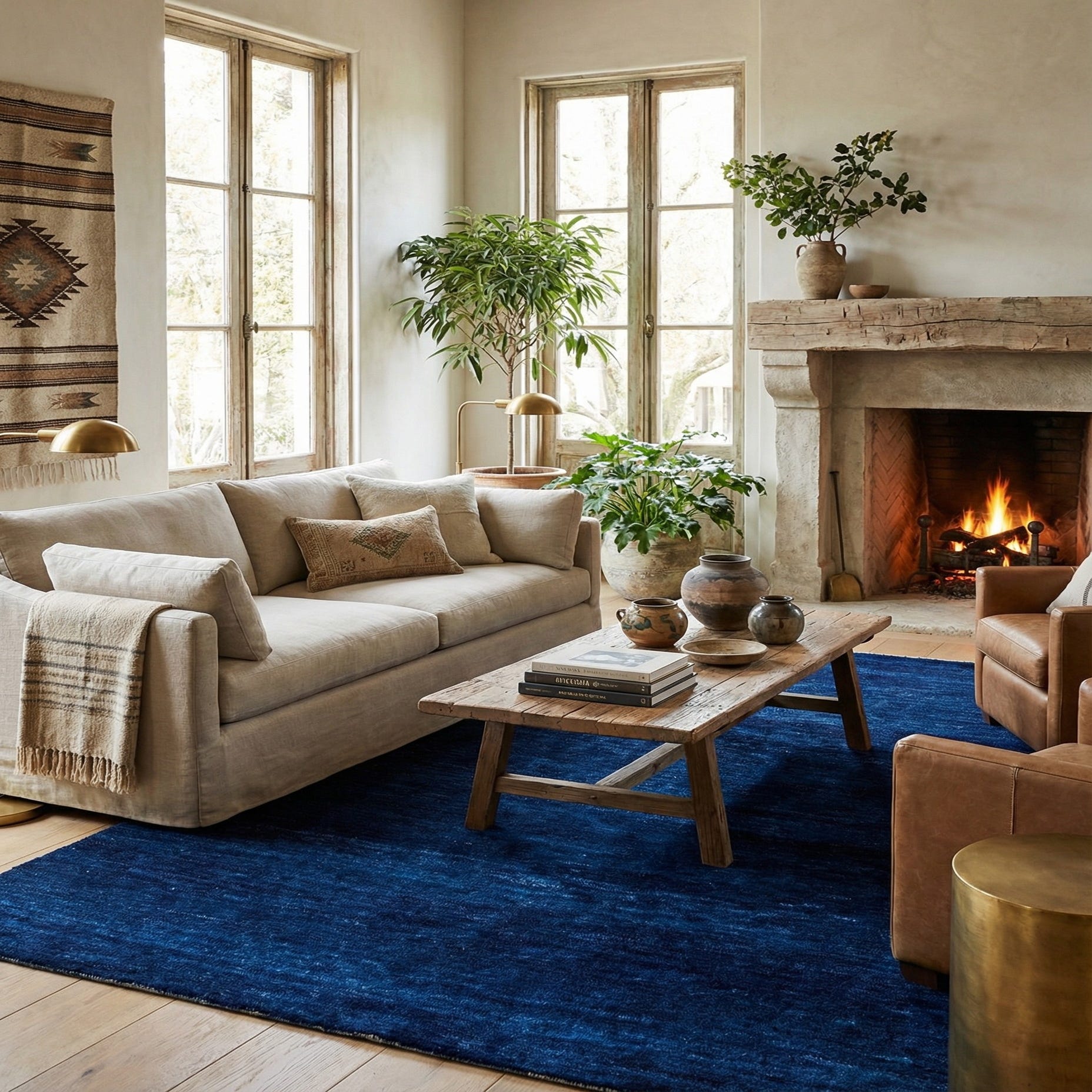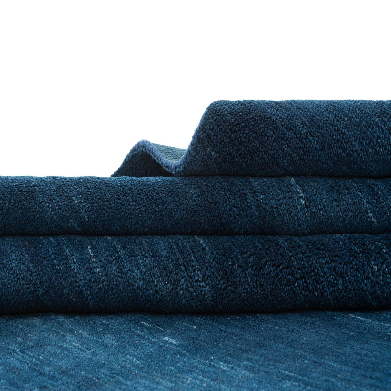 A 4x6 rectangular Gabbeh Shouli rug in deep blue, featuring a subtle modern textured pattern, suitable for various indoor rooms.