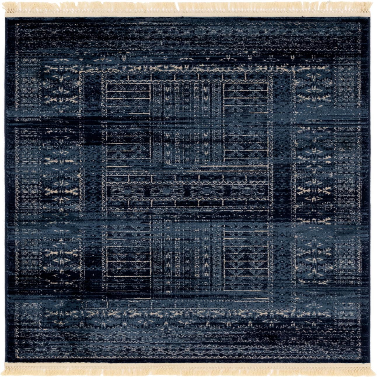 Primary color is Blue. Colors in this rug include: Blue, Ivory, Navy Blue.
