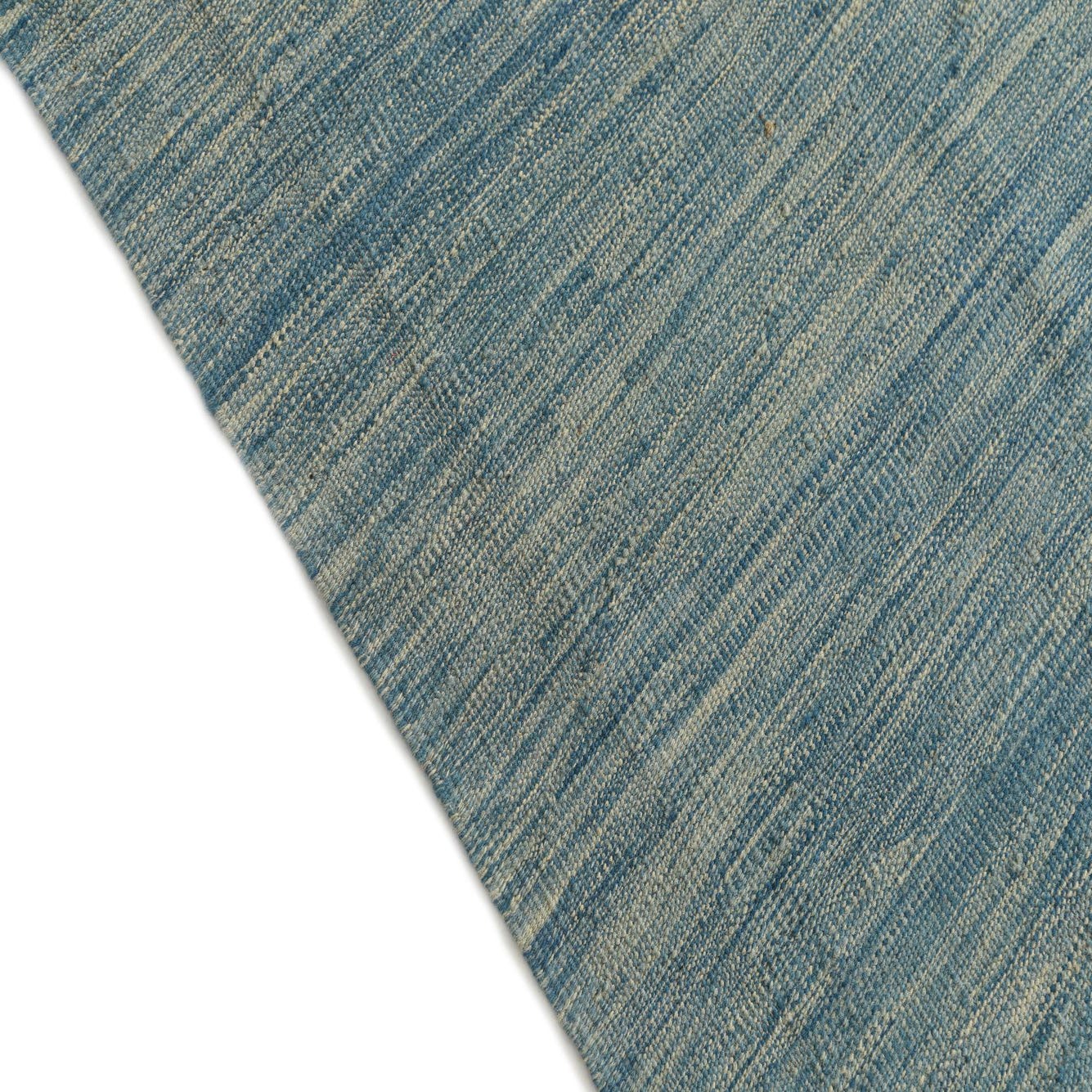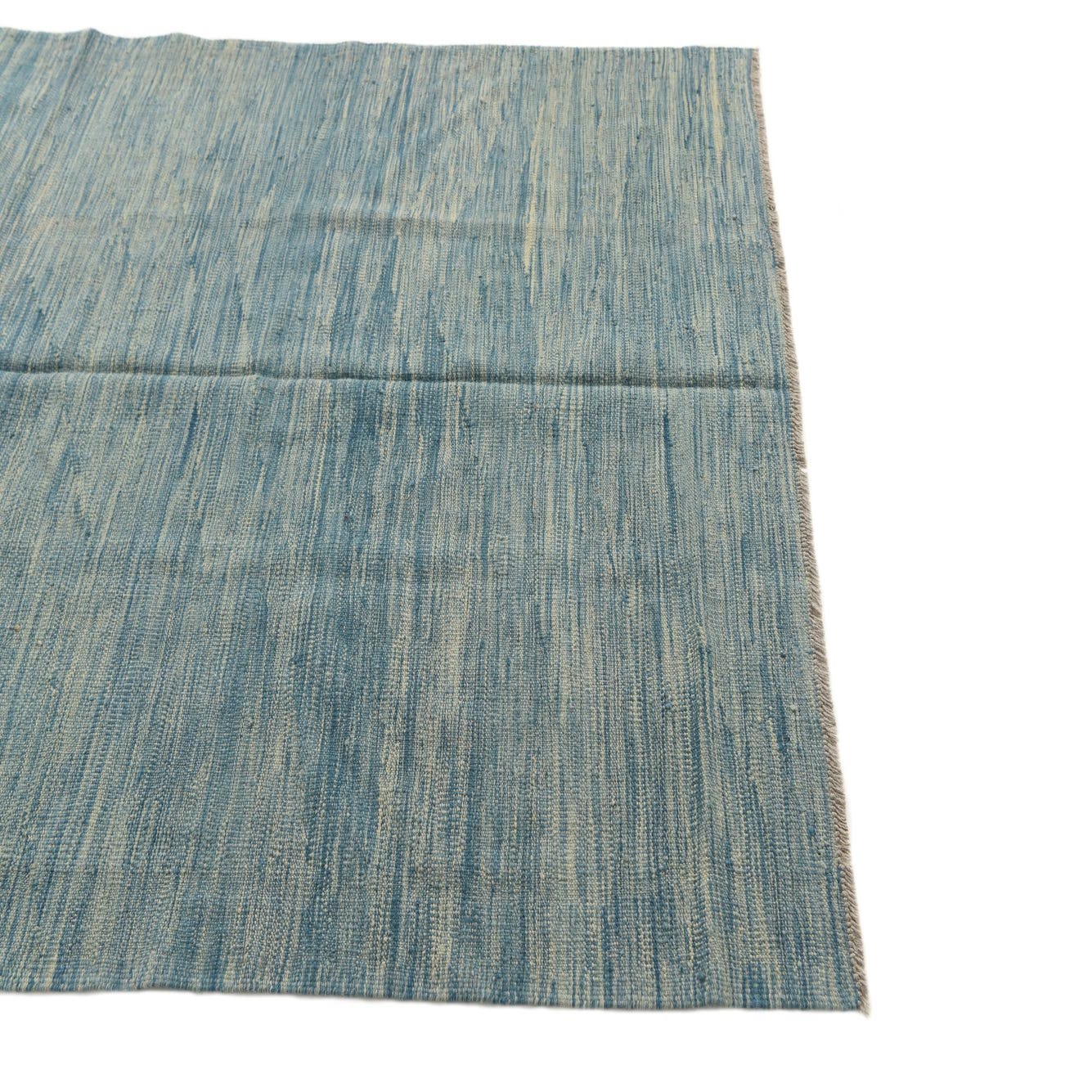 A 4x6 rectangular Kilim Modern rug from Rugs.com, featuring a flatweave texture in varying shades of blue, suitable for indoor spaces.