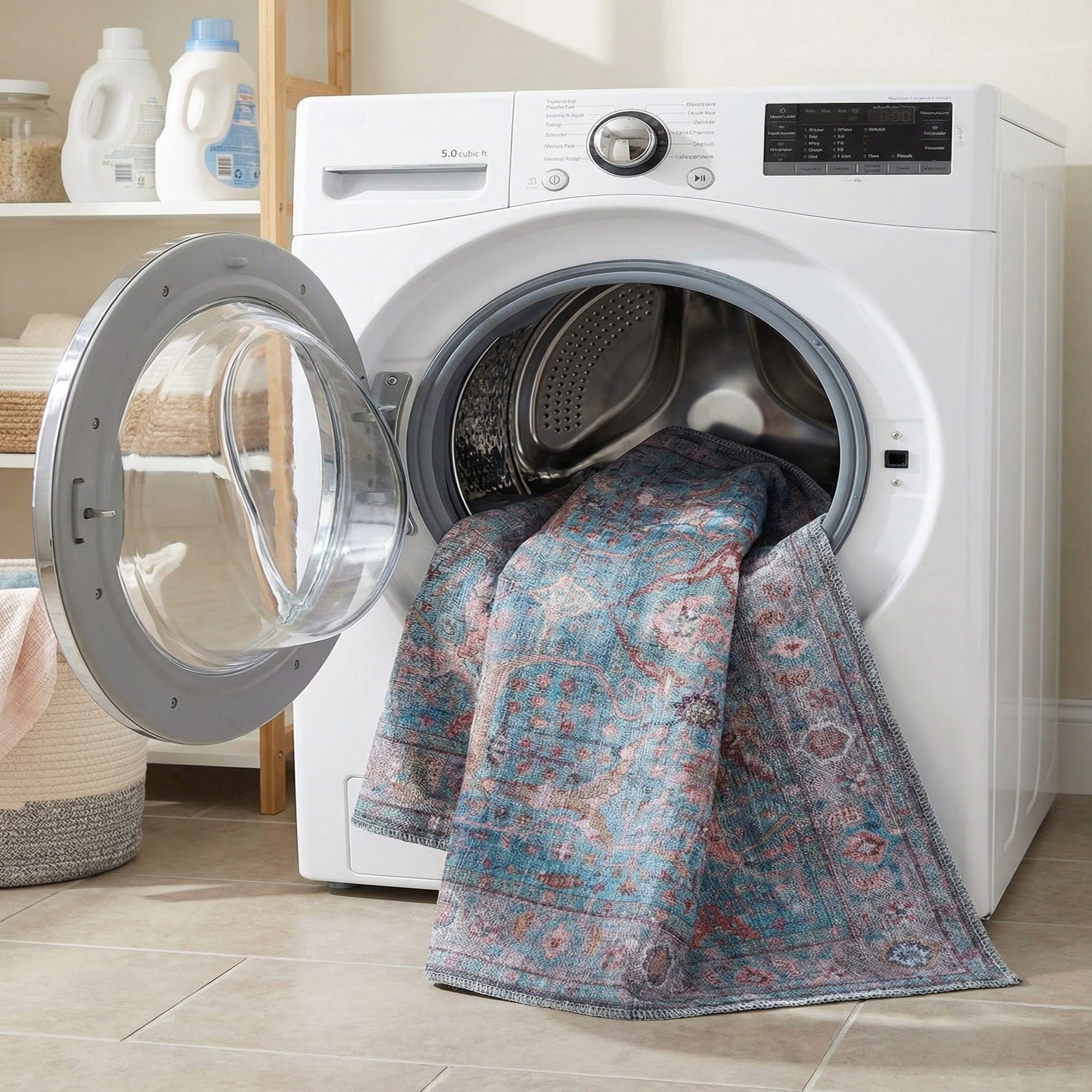 This rug works well as an anchor for a living room seating group, layered under a coffee table, or placed at the foot of a bed to add color and comfort underfoot. It pairs easily with light wood floors and neutral upholstery, and complements decor styles from coastal and cottage to boho, transitional, and modern farmhouse. The rich yet softened colorway brings warmth and pattern without dominating a room.