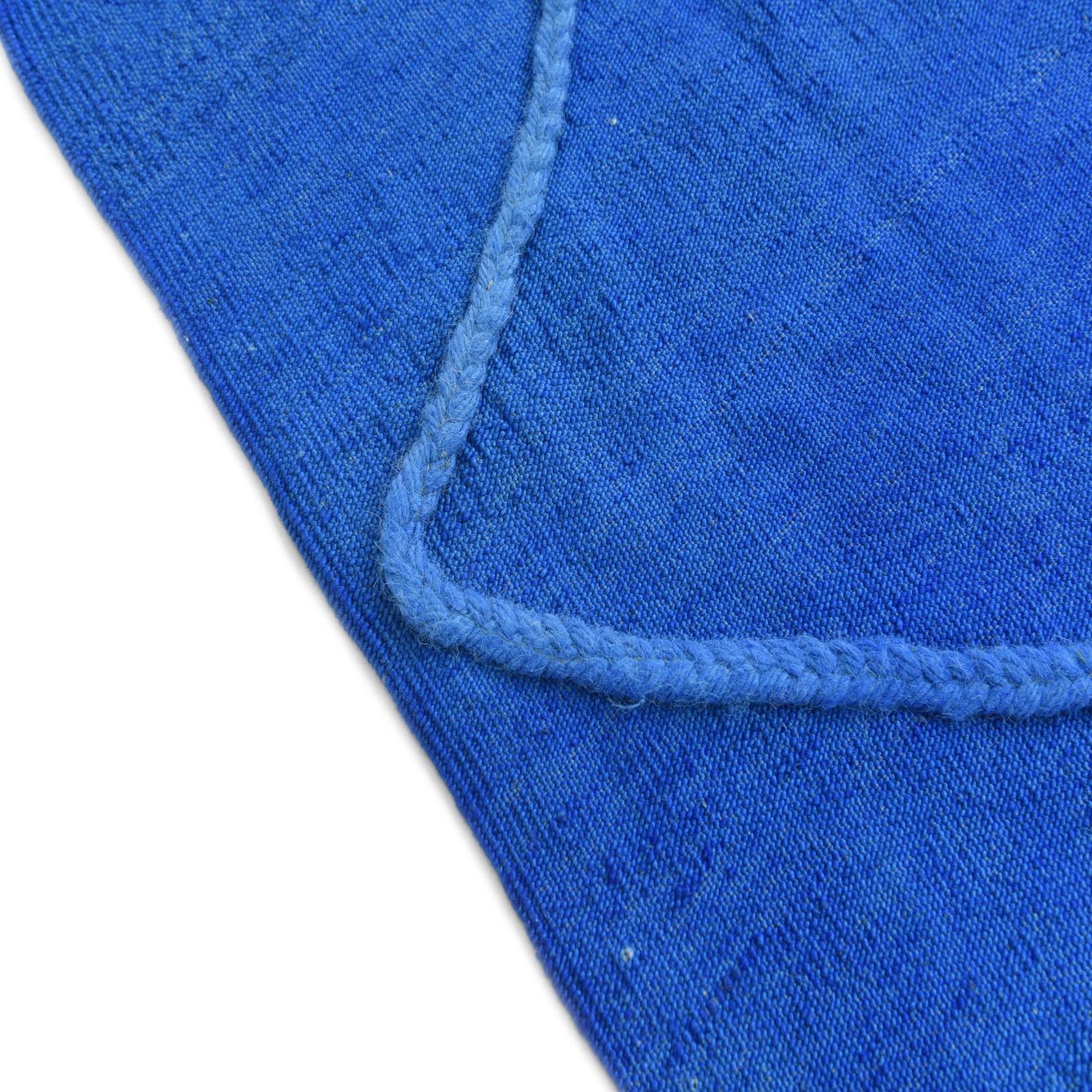 This rug's vibrant hue and versatile pattern allow for seamless integration into a variety of interior spaces. It would be equally at home in a minimalistic setting, where it could serve as a focal point, or within bohemian and eclectic styled rooms to complement an array of textures and colors. The durability of the wool and the craftsmanship involved in its creation makes this rug suitable for spaces with moderate foot traffic such as living rooms, home offices, or smaller seating areas.