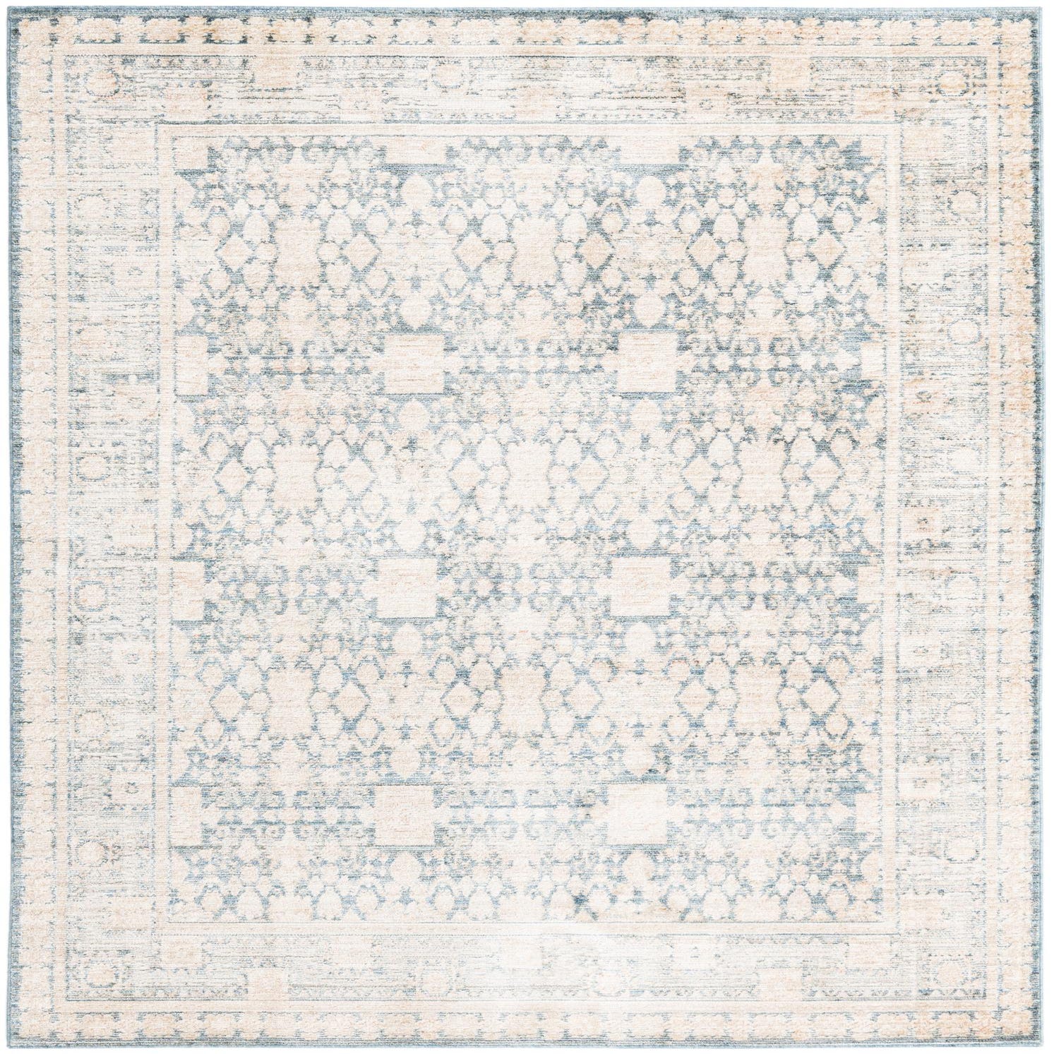Primary color is Blue. Colors in this rug include: Blue, Beige, Ivory.