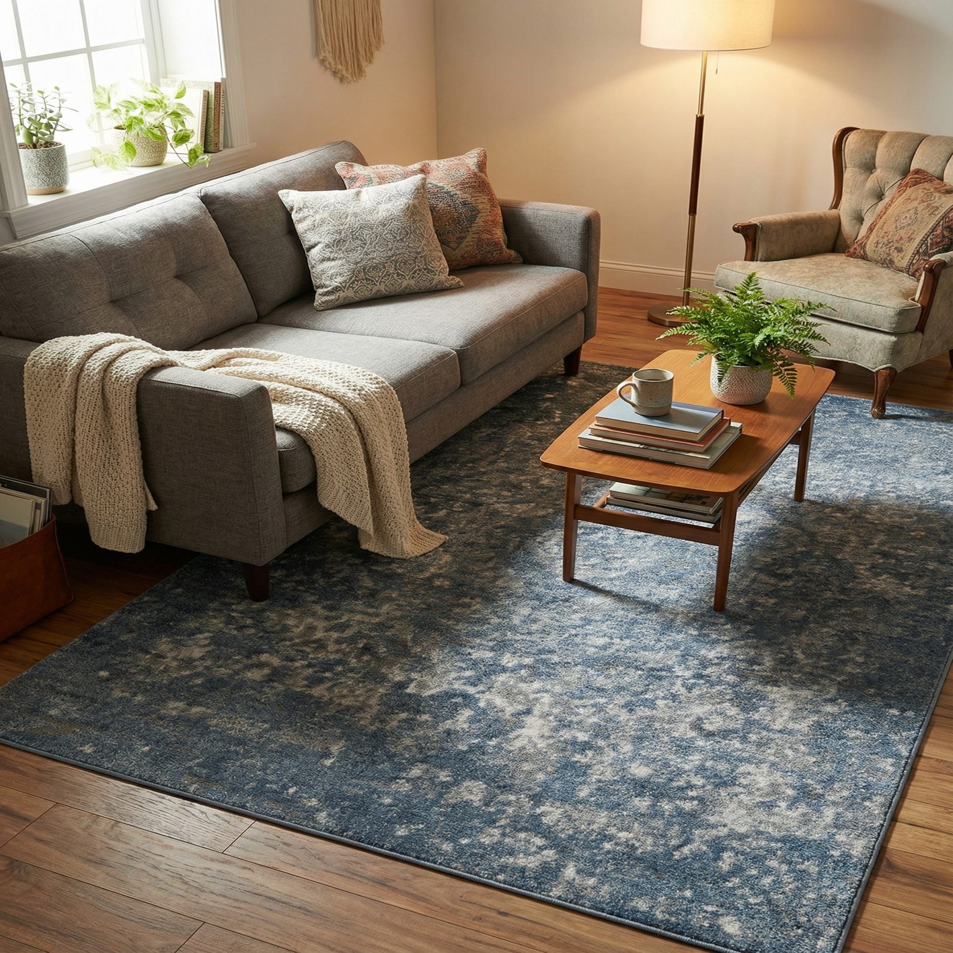 This rug pairs well with coastal and transitional interiors as well as modern farmhouse or industrial schemes—think warm wood furniture, linen upholstery, and metal accents in brass or black. It works nicely as an anchoring piece in a small seating area, tucked under a bed’s footboard, or layered in an entry or home office to add color and depth without overwhelming the space. Machine made of 85% polypropylene and 15% polyester, it’s a practical choice when you want a soft hand and consistent texture in a modestly scaled room.