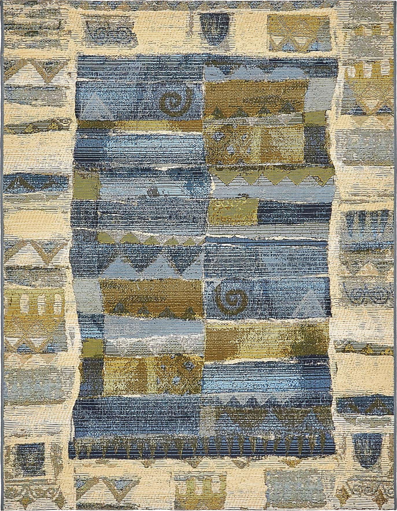 Primary color is Blue. Colors in this rug include: Blue, Beige, Brown, Cream, Olive.