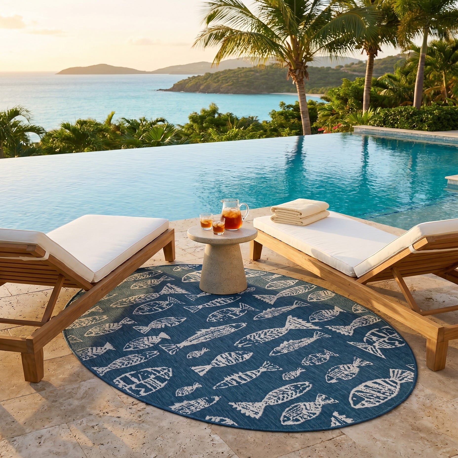 4' x 6' Easy-Clean Coastal Indoor / Outdoor Oval Rug