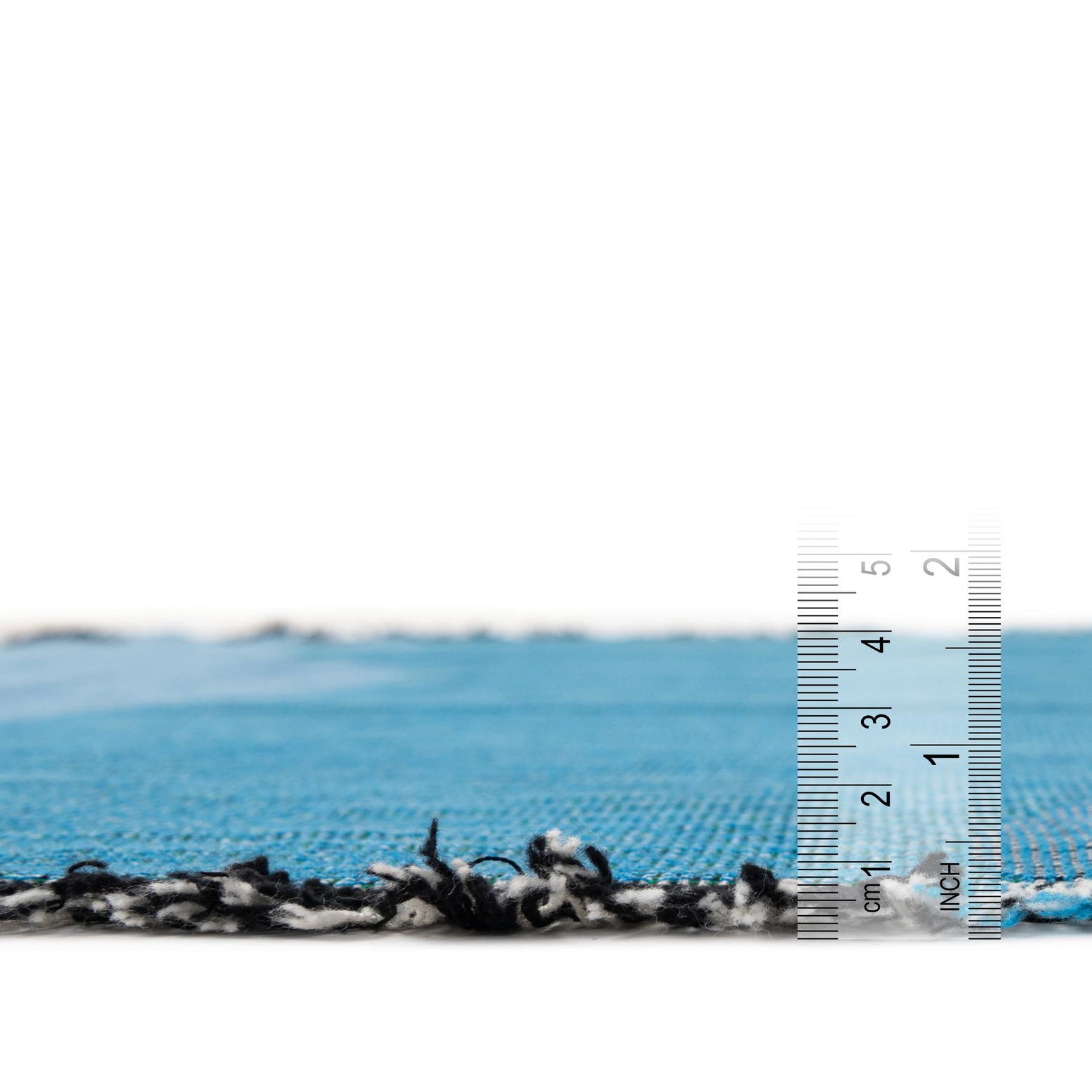Primary color is Blue. Colors in this rug include: Blue, Ivory, Light Blue.