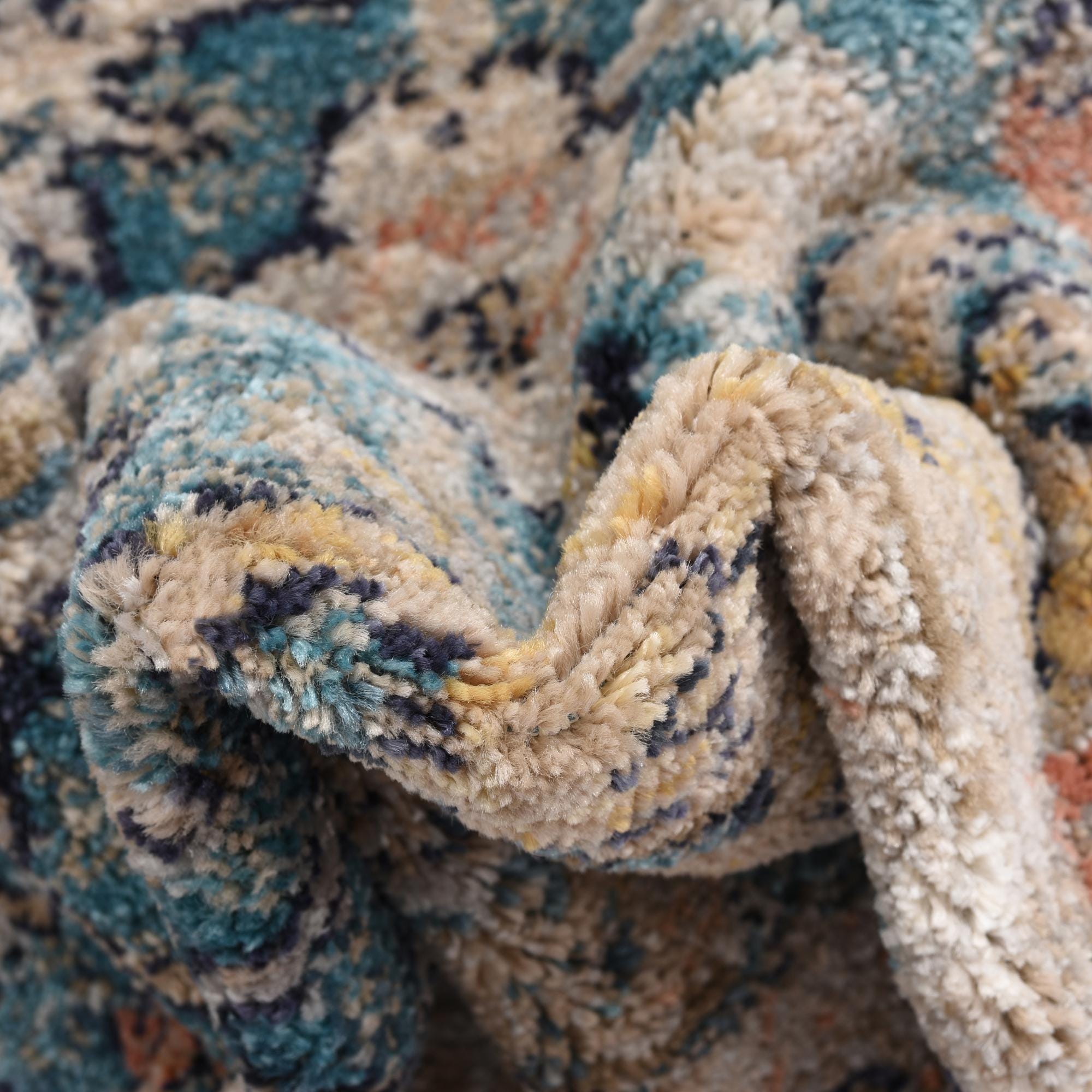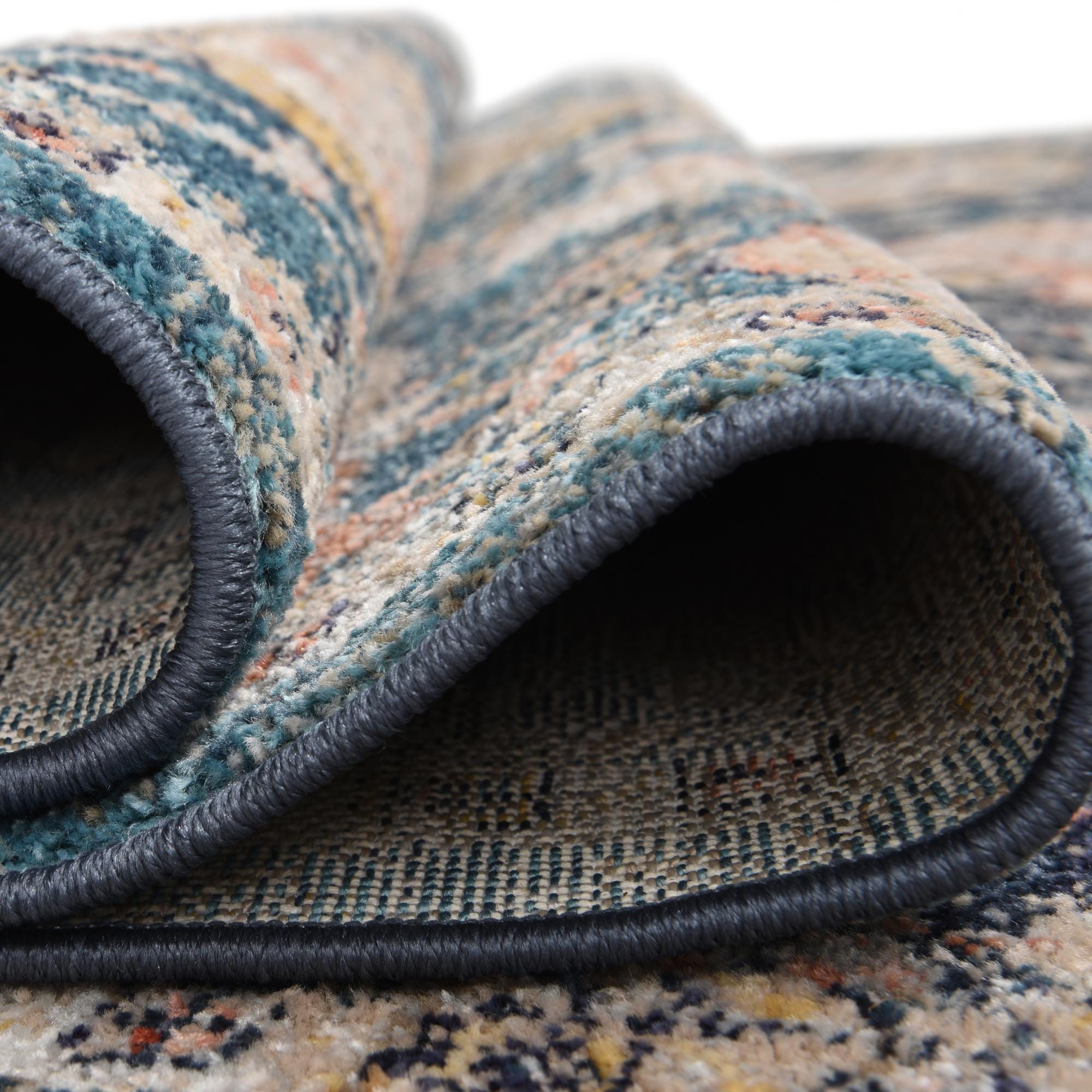 This shape and palette work beautifully under a small round dining table, in a foyer to create a focused entry statement, or in a cozy reading nook to anchor seating. Pair it with navy or ivory upholstery and warm wood furniture for a balanced, layered room; it also fits nicely with transitional, cottage, or traditional interiors that favor a lived-in, collected look.