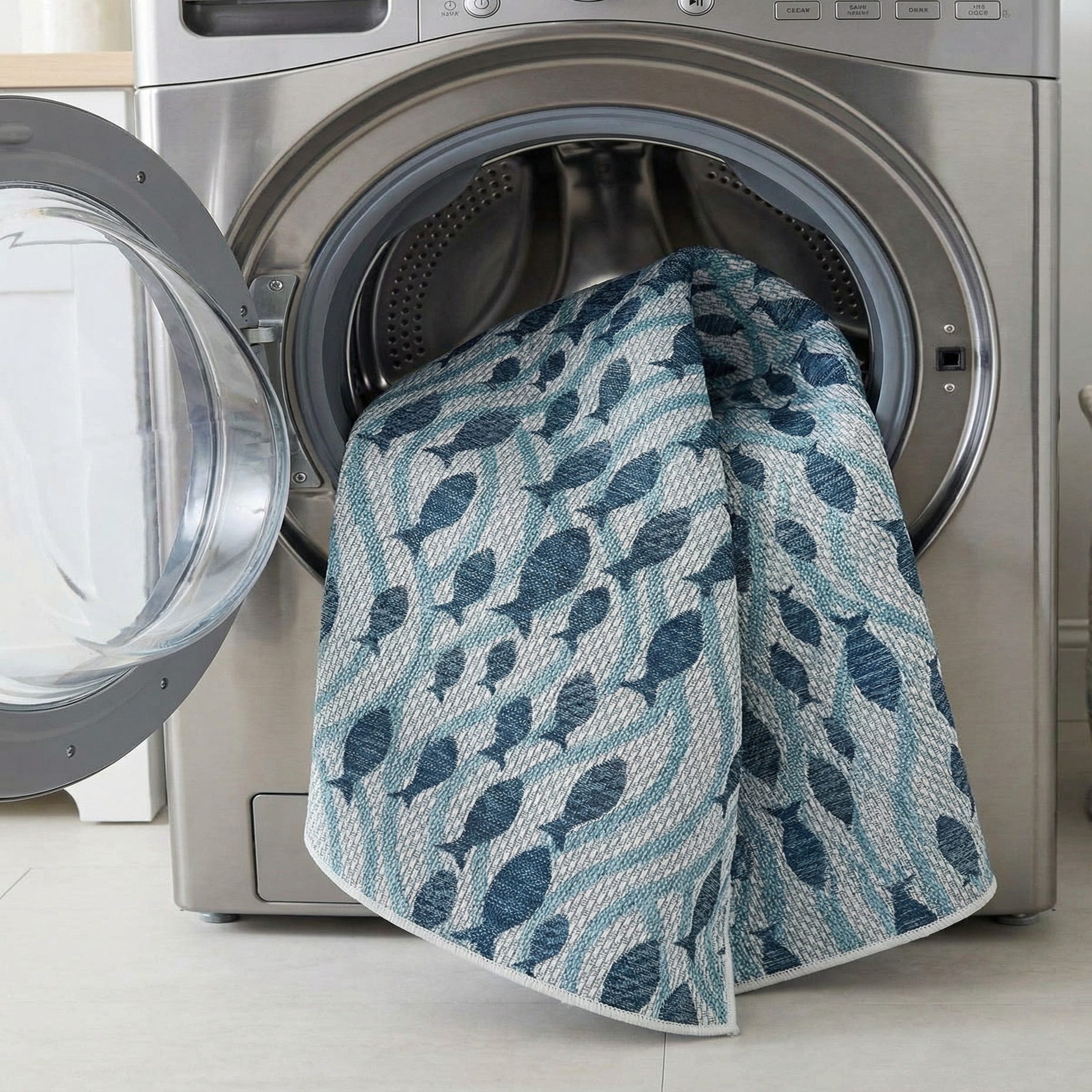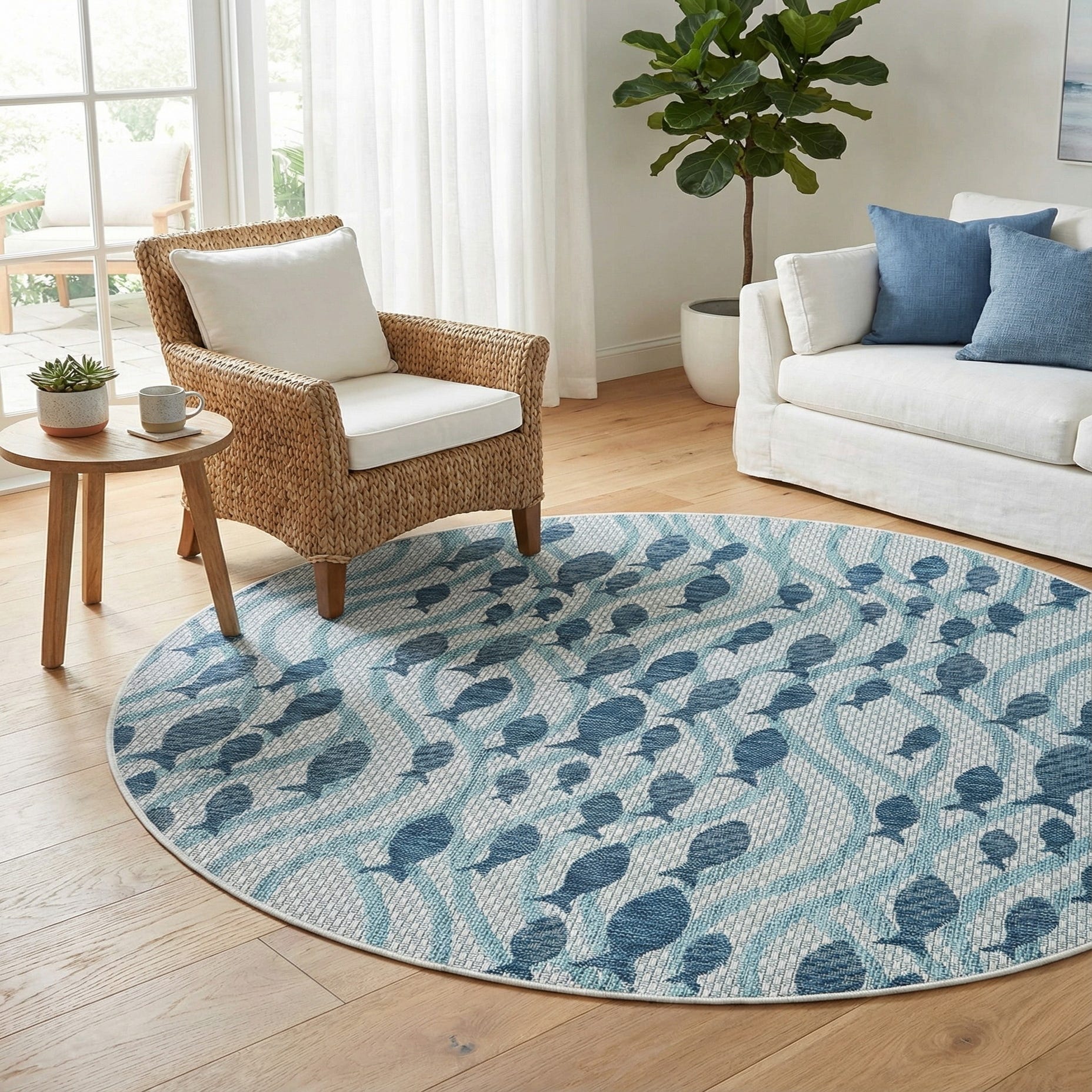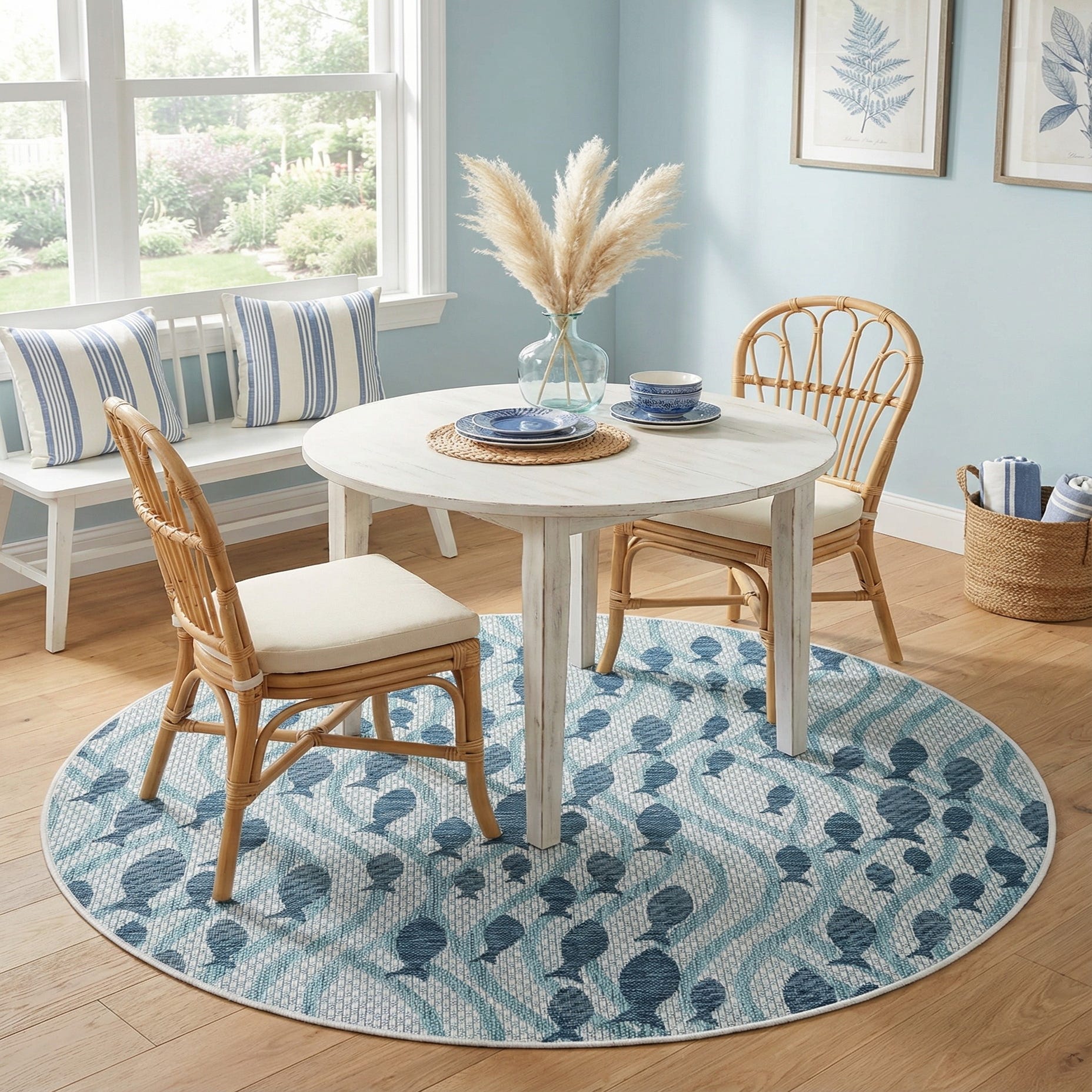 5' 3 x 5' 3 Washable Coastal Indoor / Outdoor Round Rug