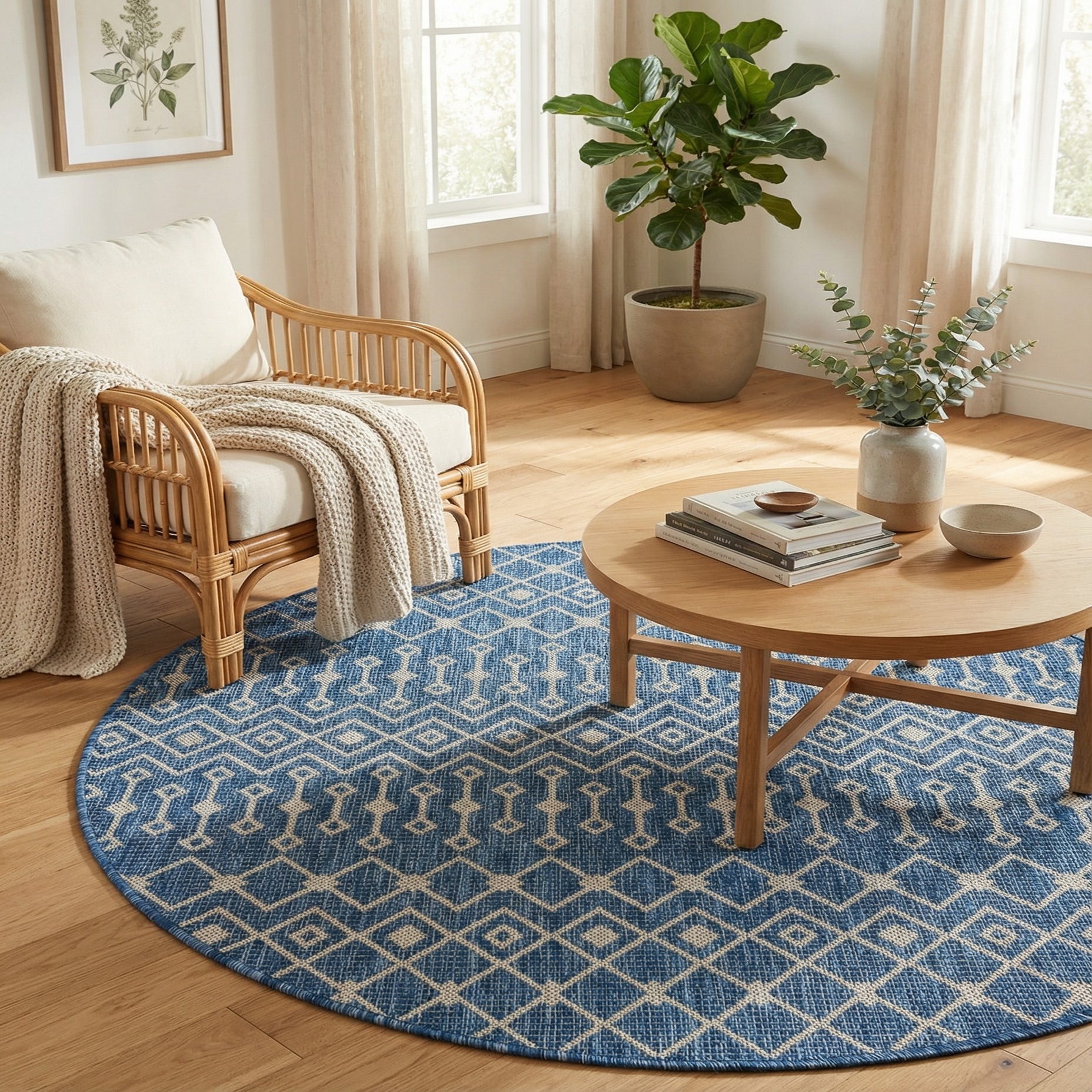 5' 3 x 5' 3 Washable Lattice Indoor / Outdoor Round Rug