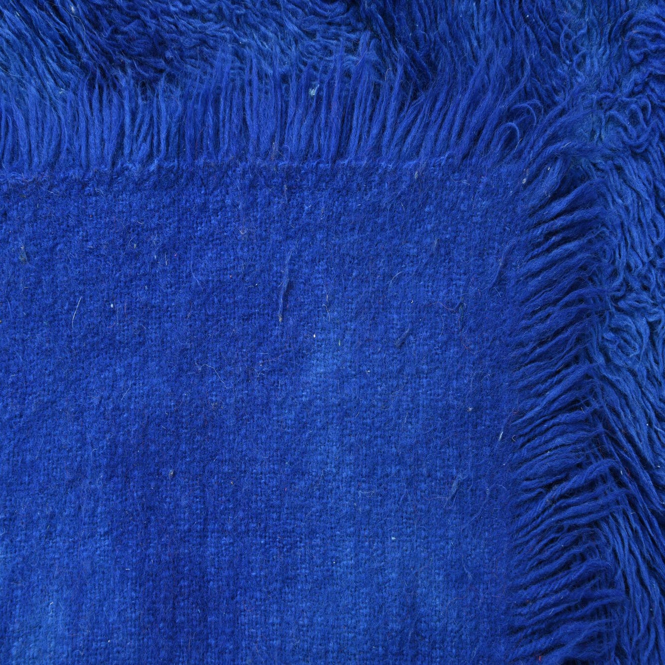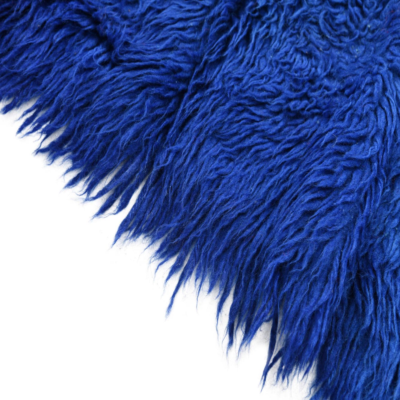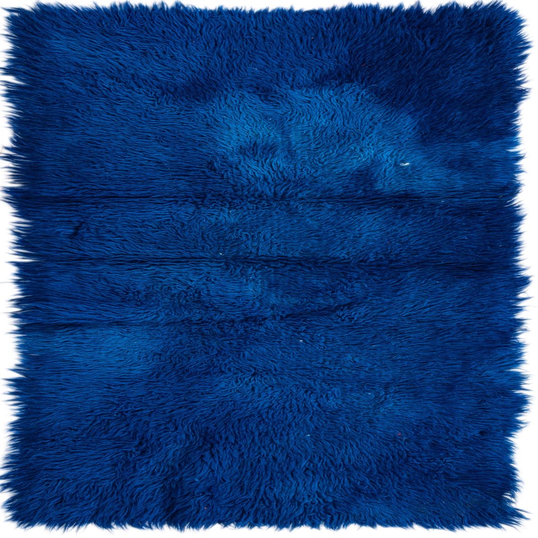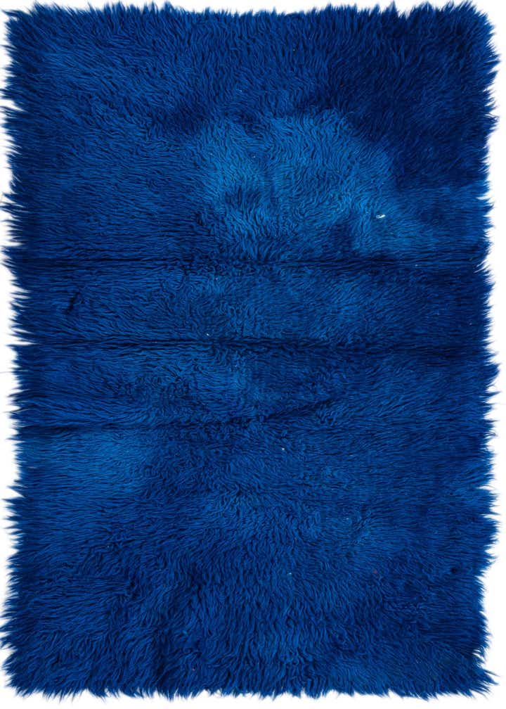 A plush 5 ft runner rug in varying shades of deep blue, featuring a soft shag pile.