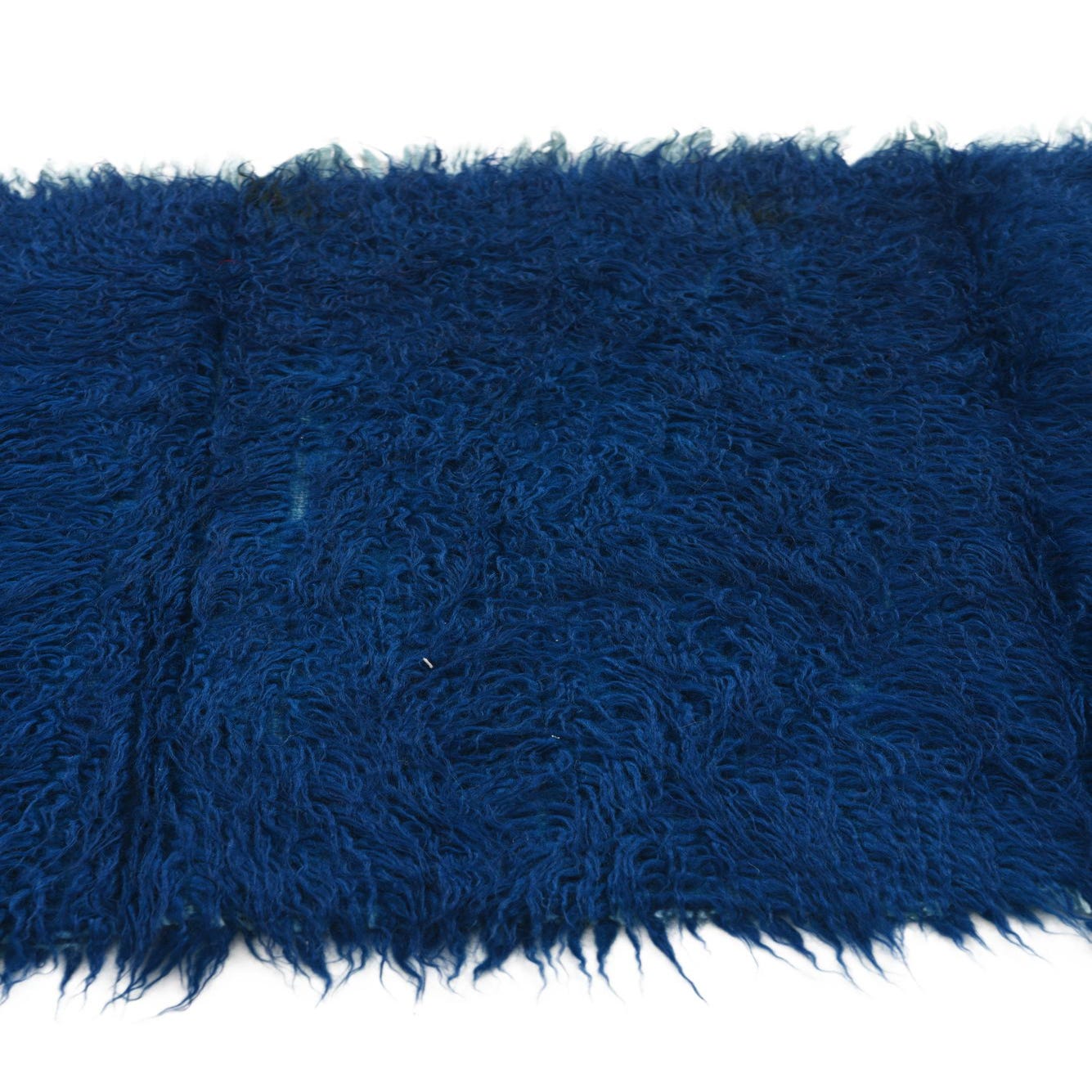 A plush, deep blue 5 ft runner rug with a shaggy texture, perfect for adding warmth to a hallway.