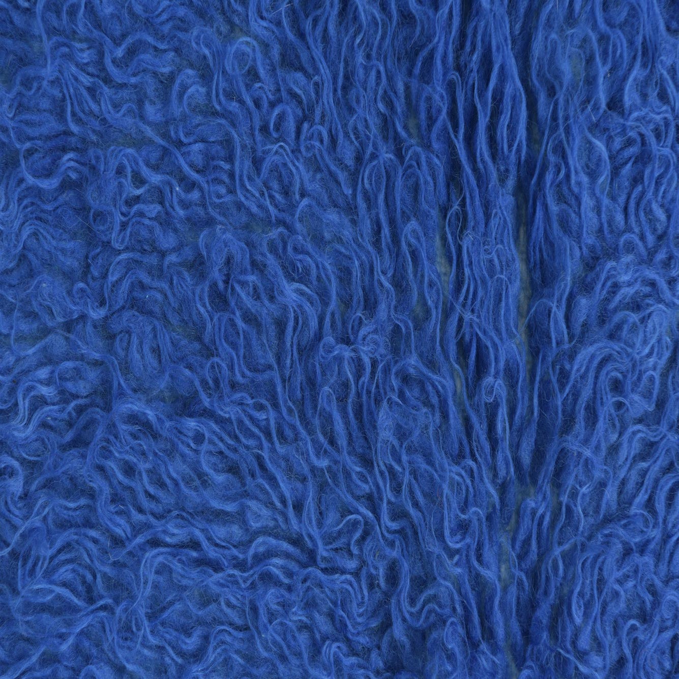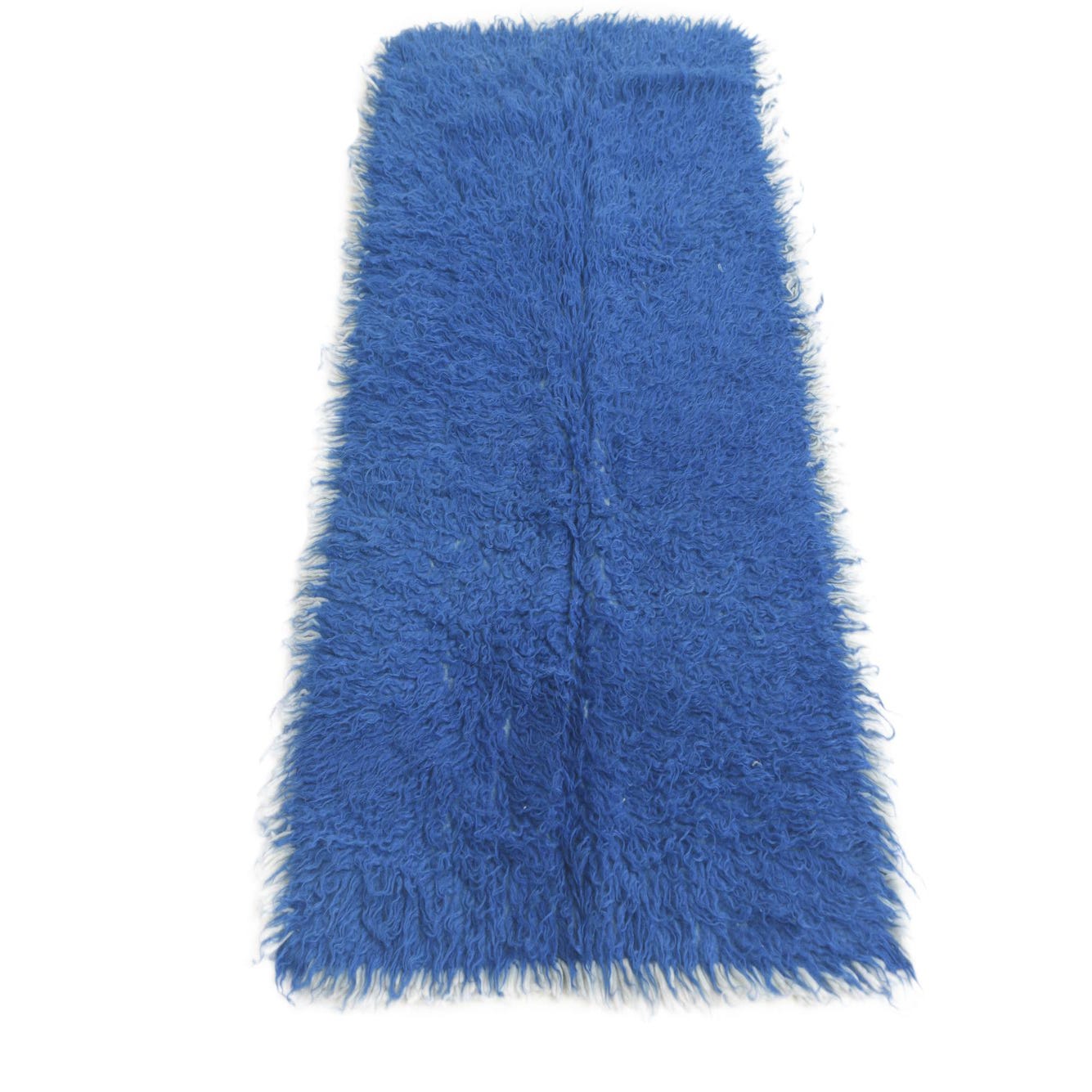 A vibrant blue 5 ft runner rug with a shaggy, textured pile and fringed edges, perfect for a hallway.