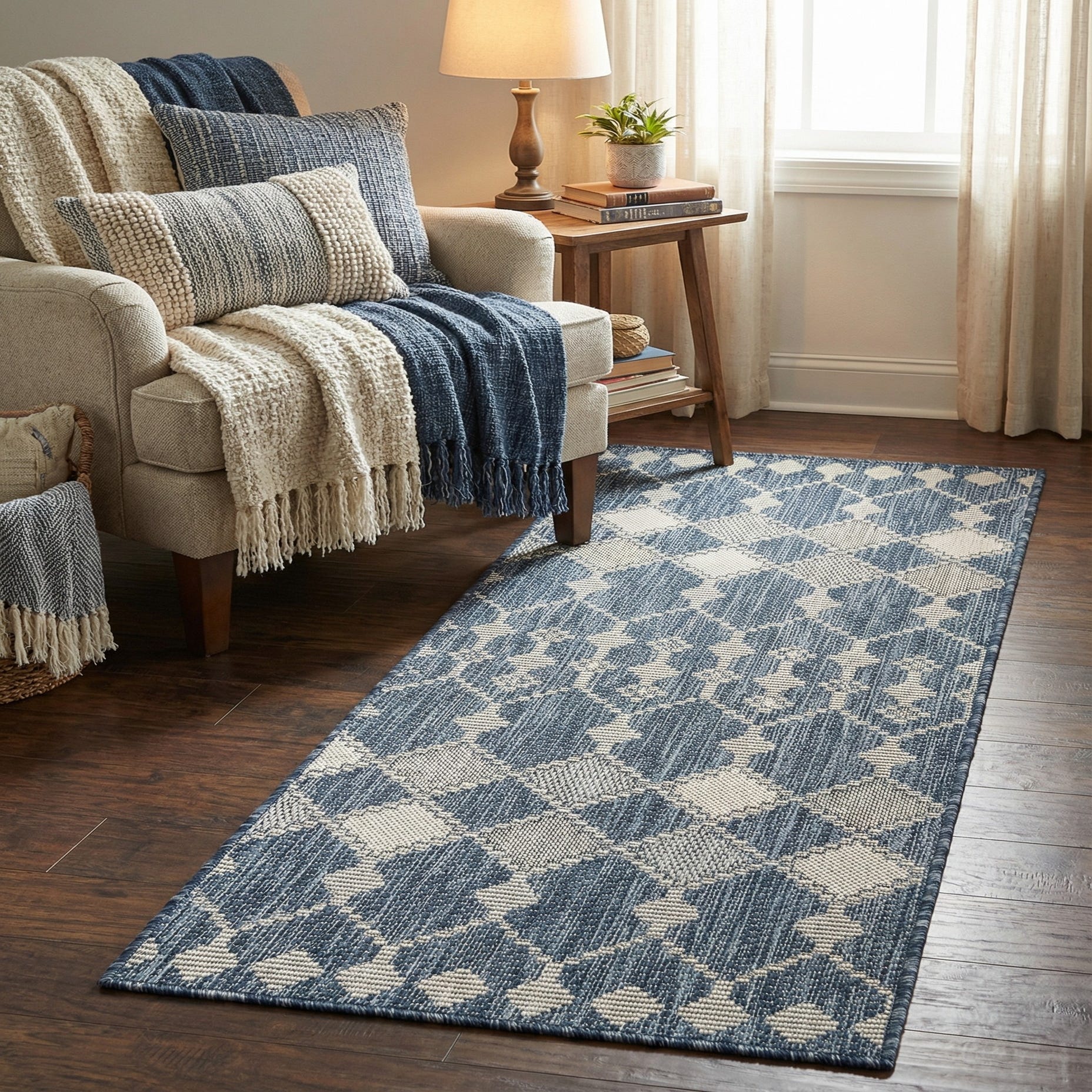 1' 10 x 4' 6 Washable Lattice Indoor / Outdoor Runner Rug