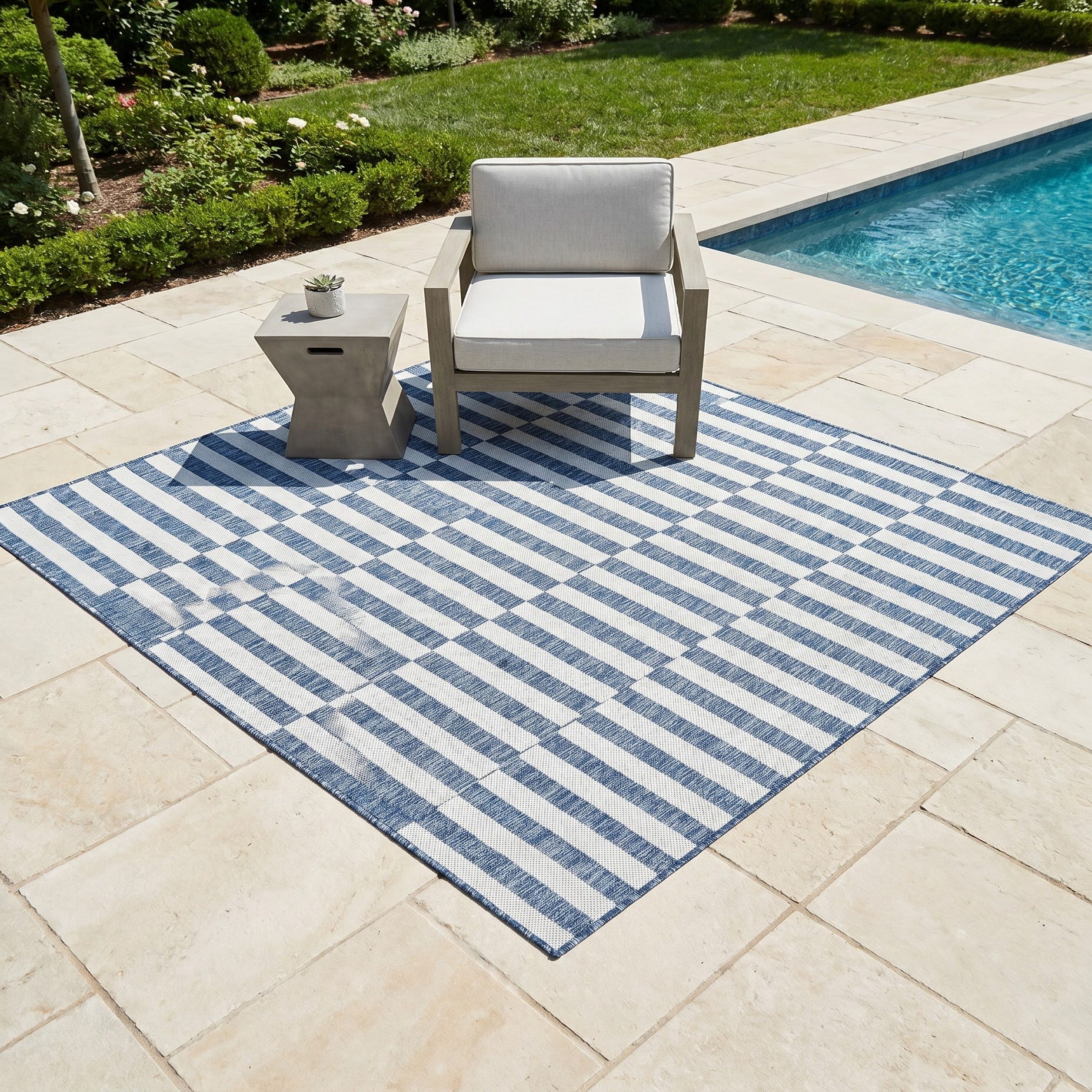 I bought this rug for my balcony and it’s transformed the space. I don’t have to worry about the rug if it rains- it’s very good quality. I’m very happy with this purchase!