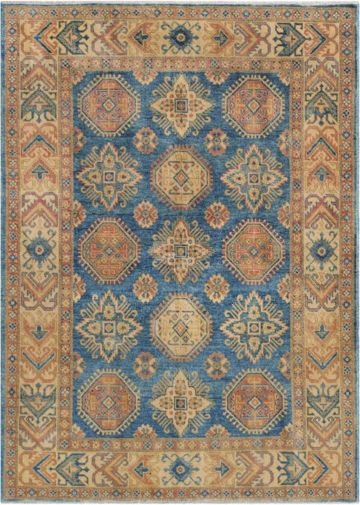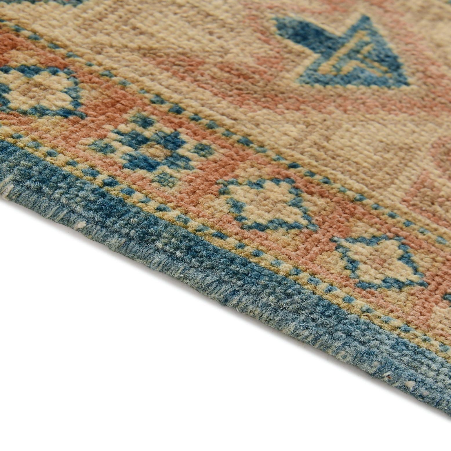 Primary color is Blue. Colors in this rug include: Blue, Beige, Brown, Ivory, Terracotta.