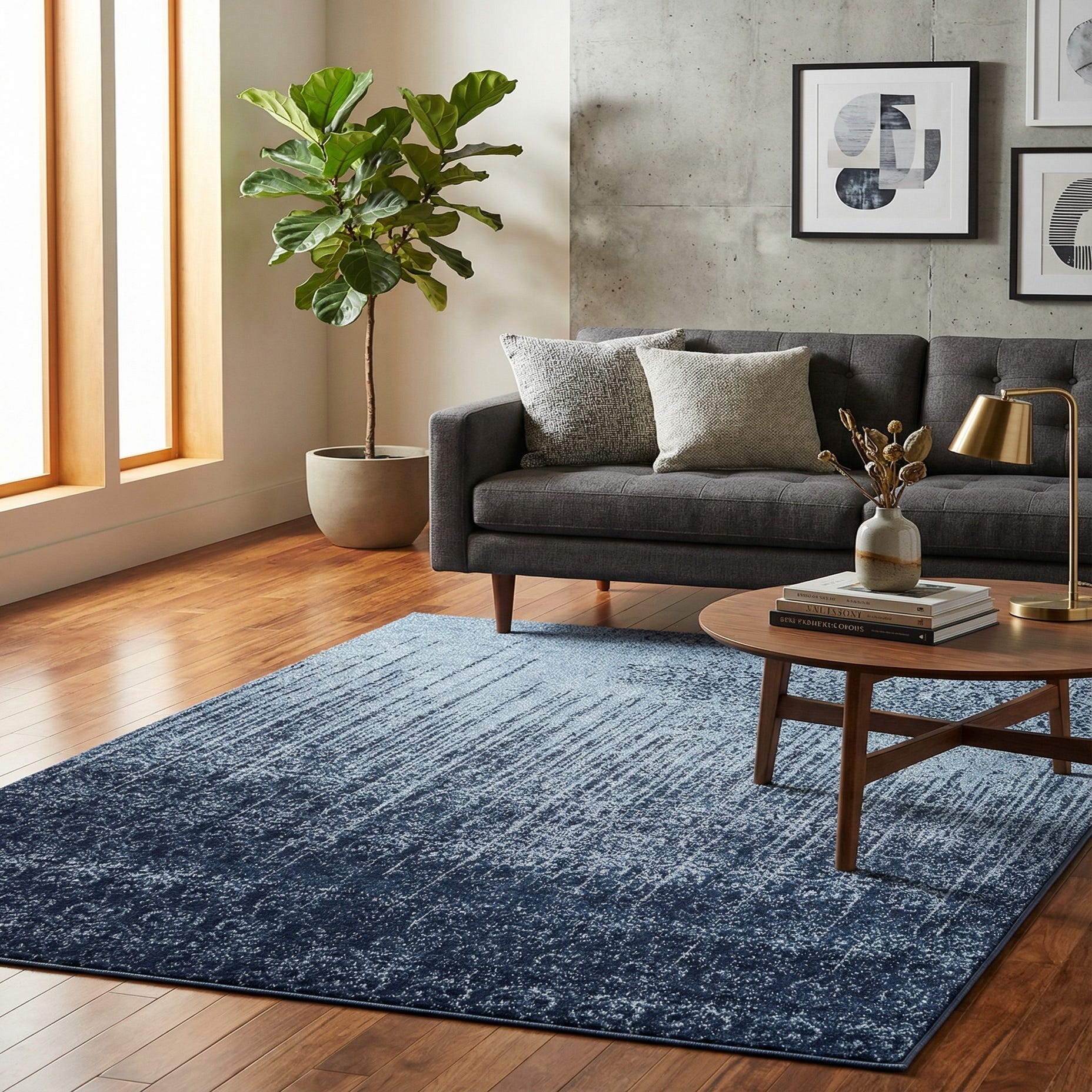 Primary color is Blue. Colors in this rug include: Blue, Navy Blue.