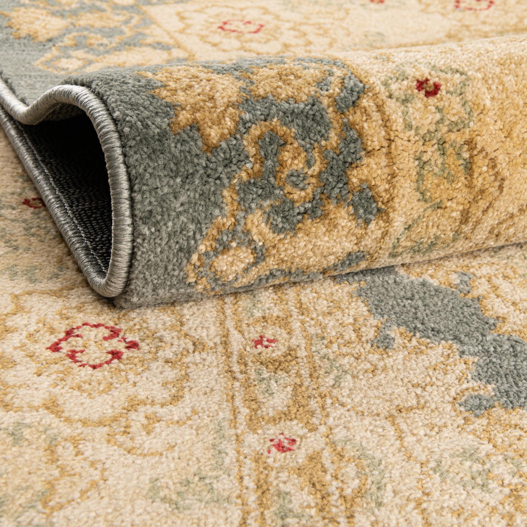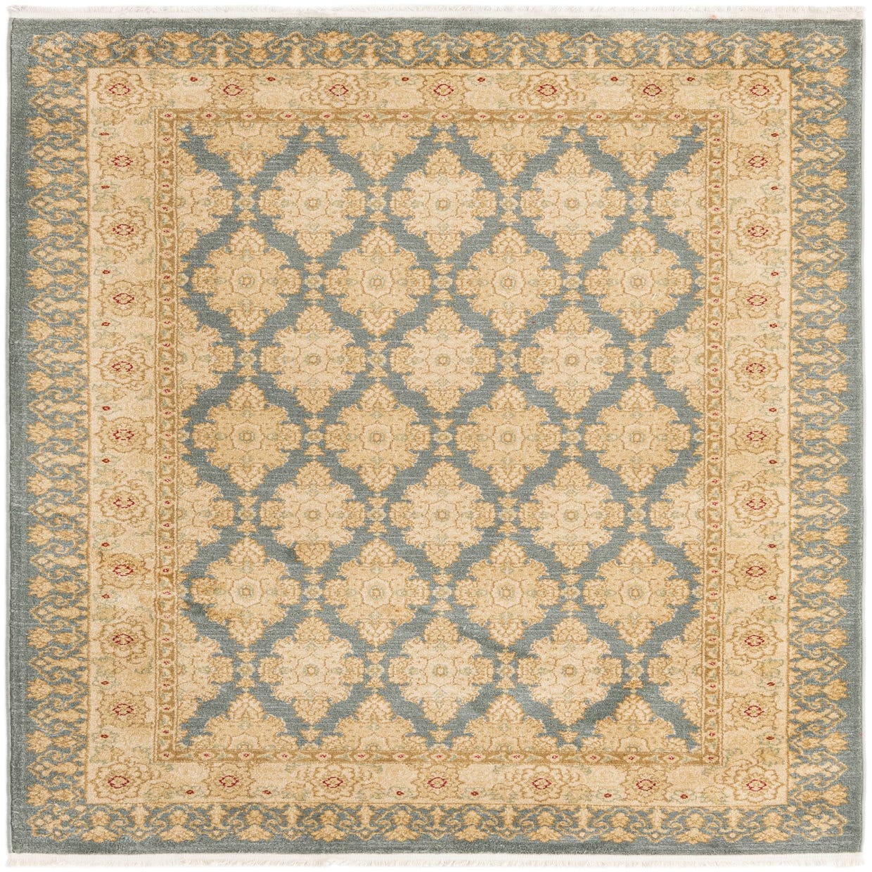 Primary color is Blue. Colors in this rug include: Blue, Beige, Cream, Light Brown, Light Green, Red.