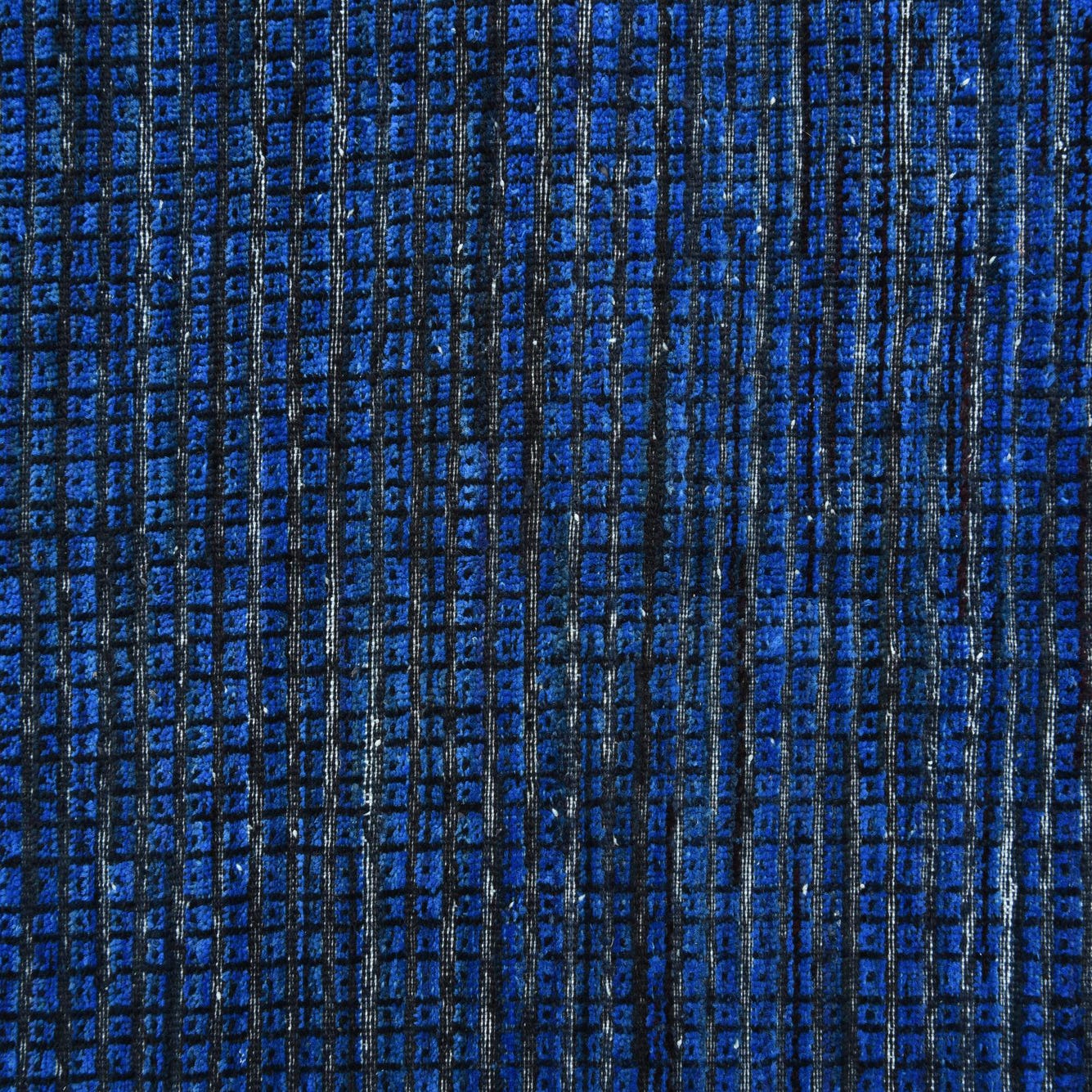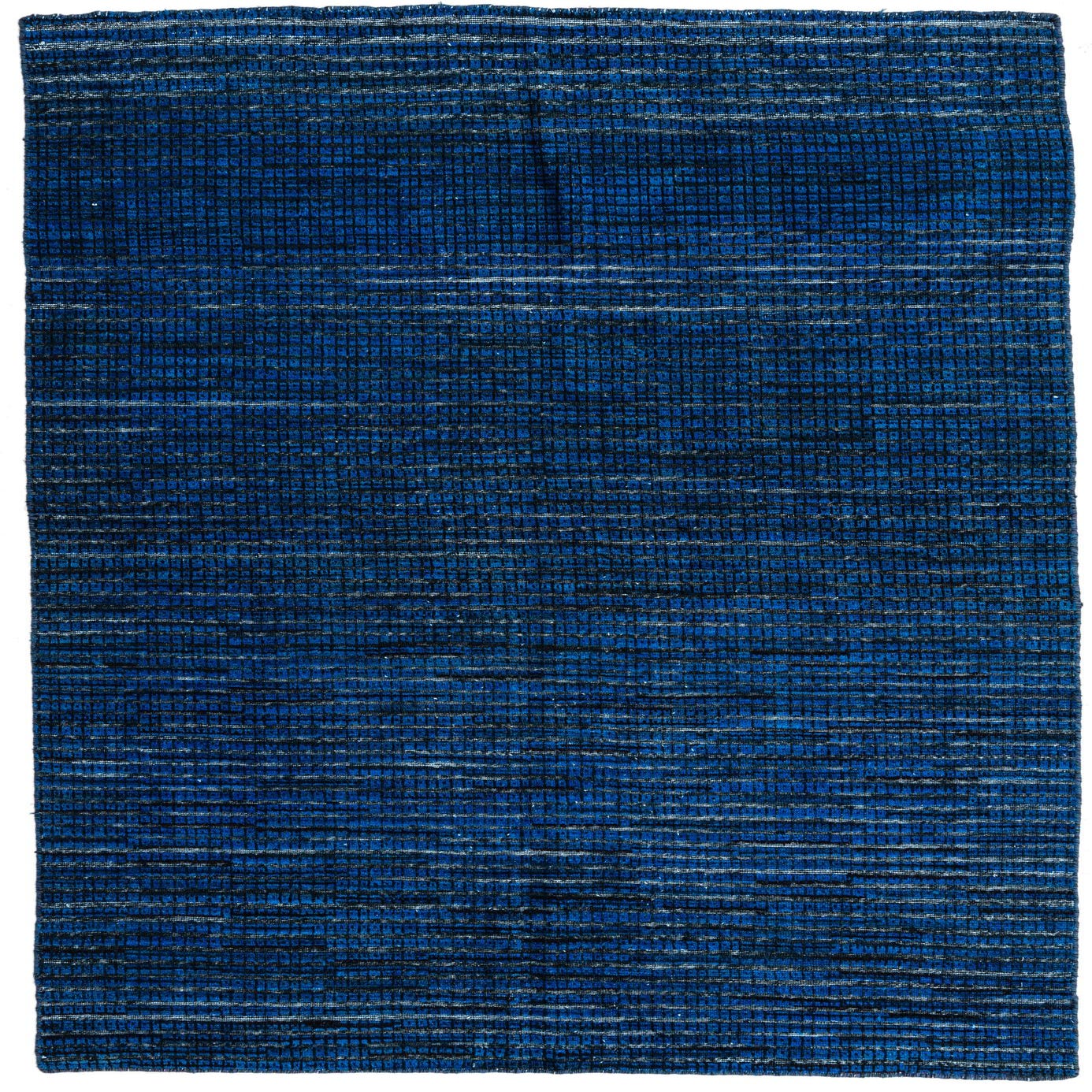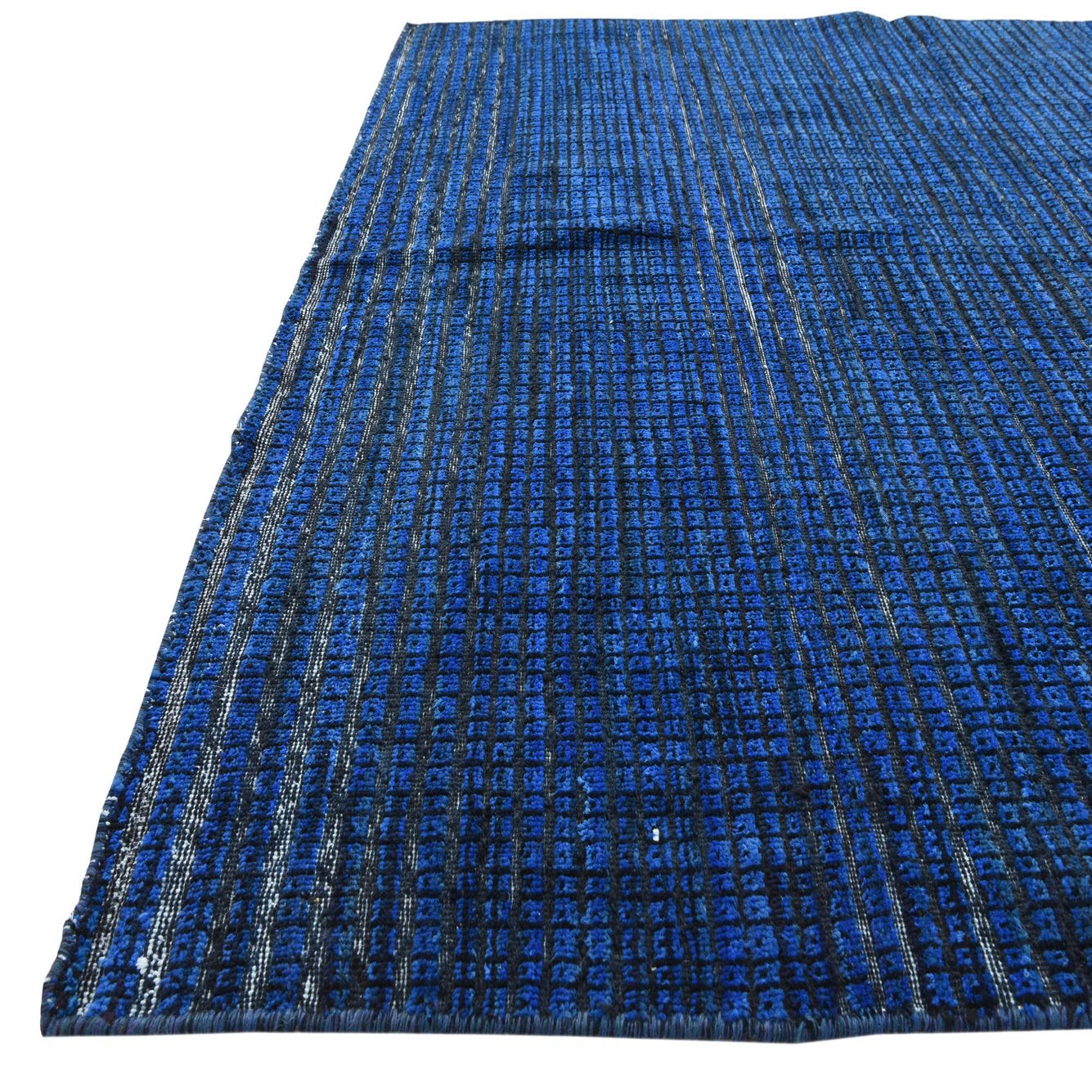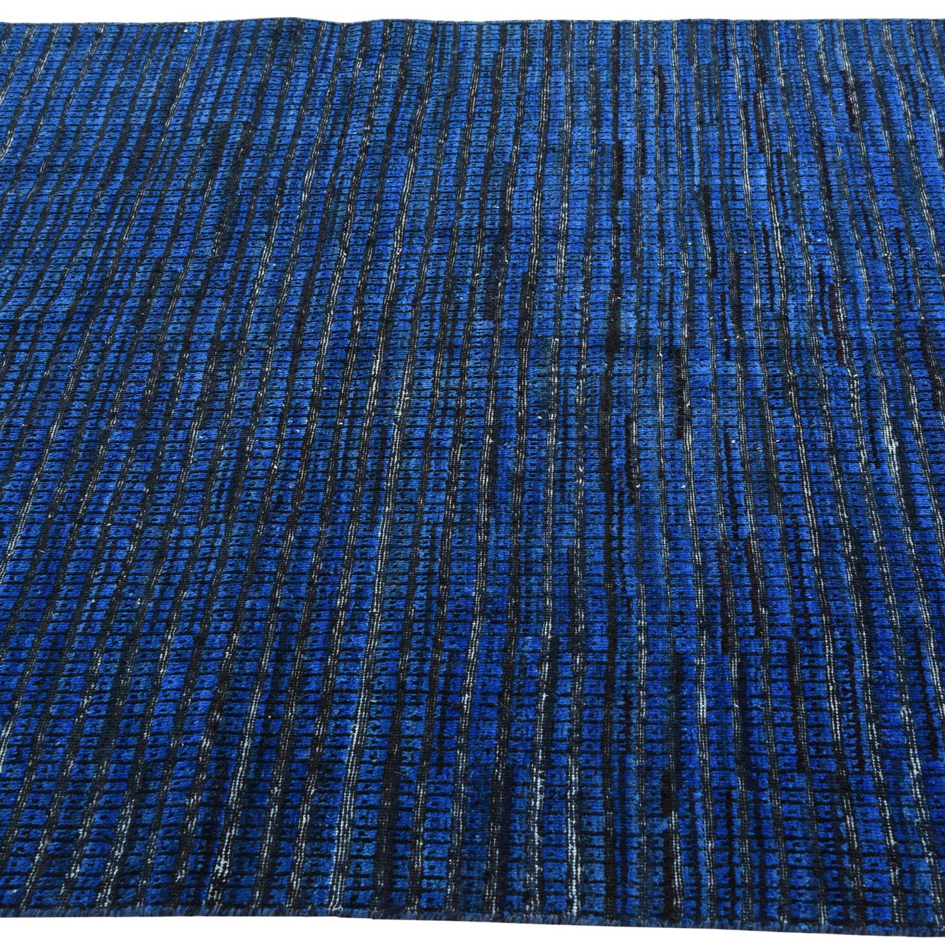A 5x8 rectangular Darya rug in deep blue wool with a textured, modern oriental pattern featuring subtle horizontal lines.