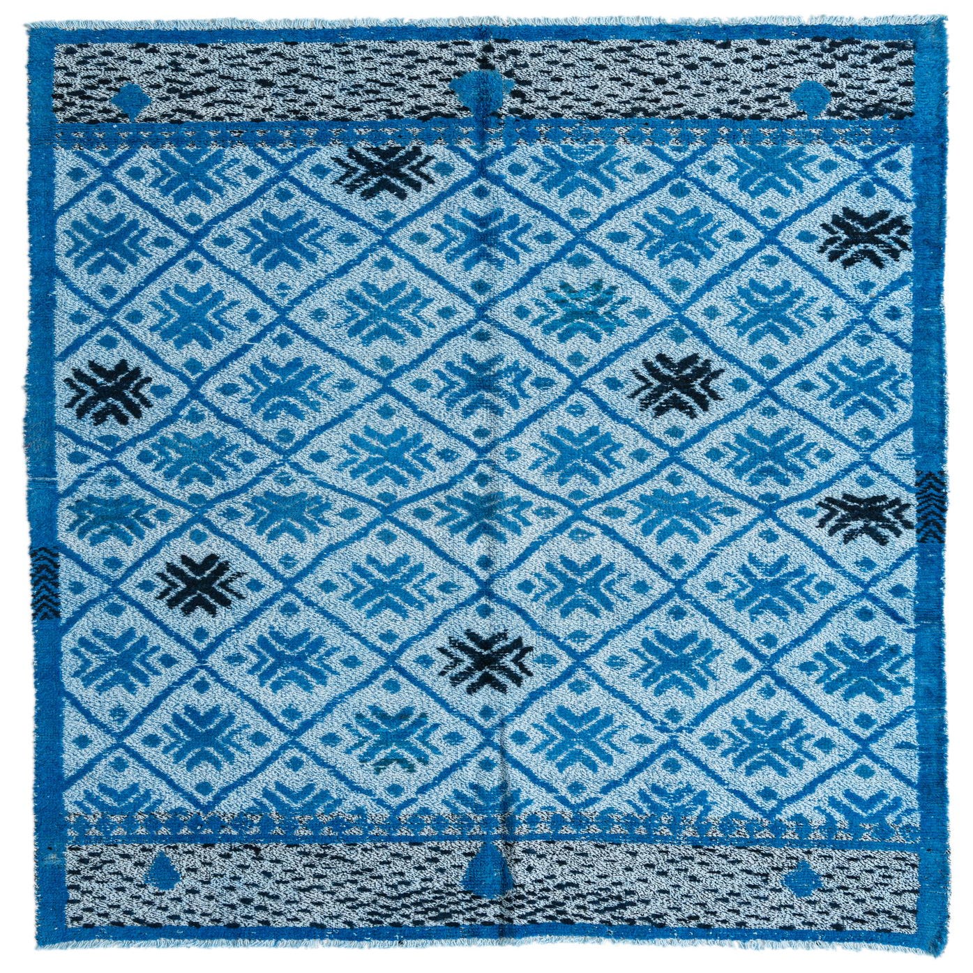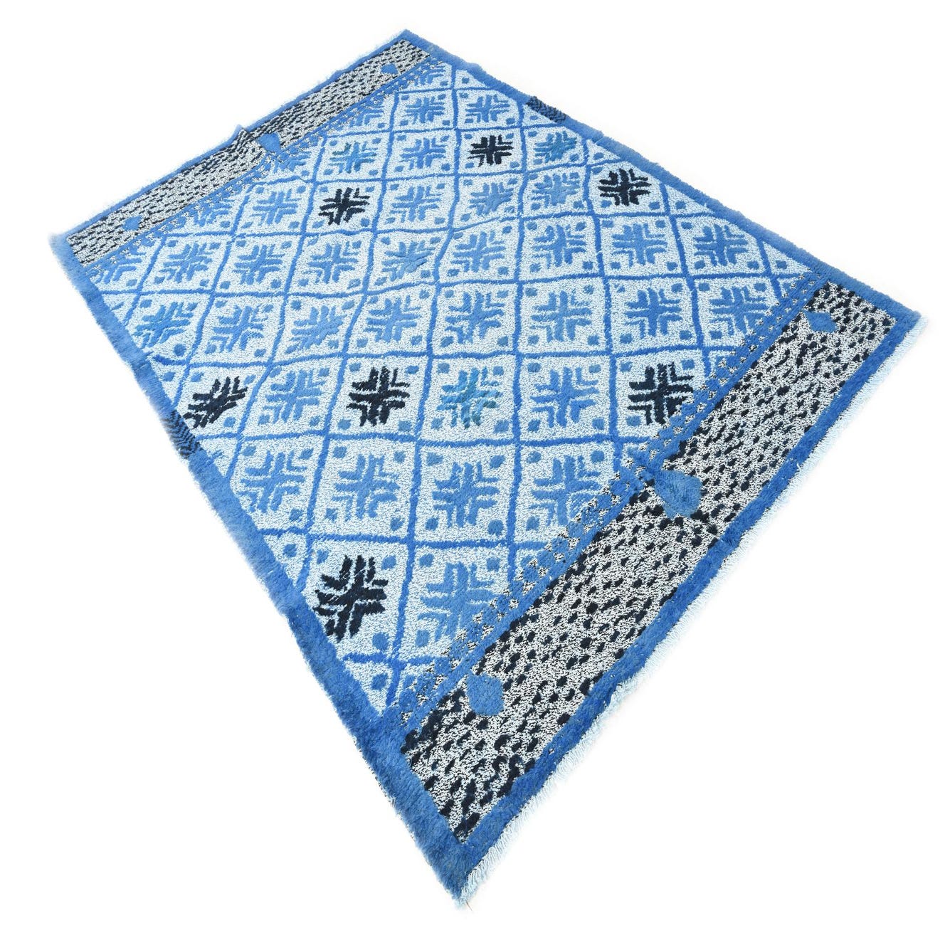 A 5x8 rectangular Darya rug in shades of blue with a modern geometric and abstract pattern, featuring a textured wool pile.