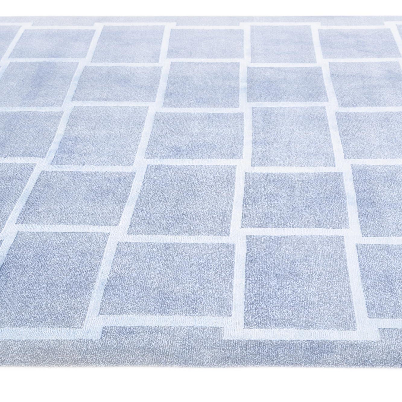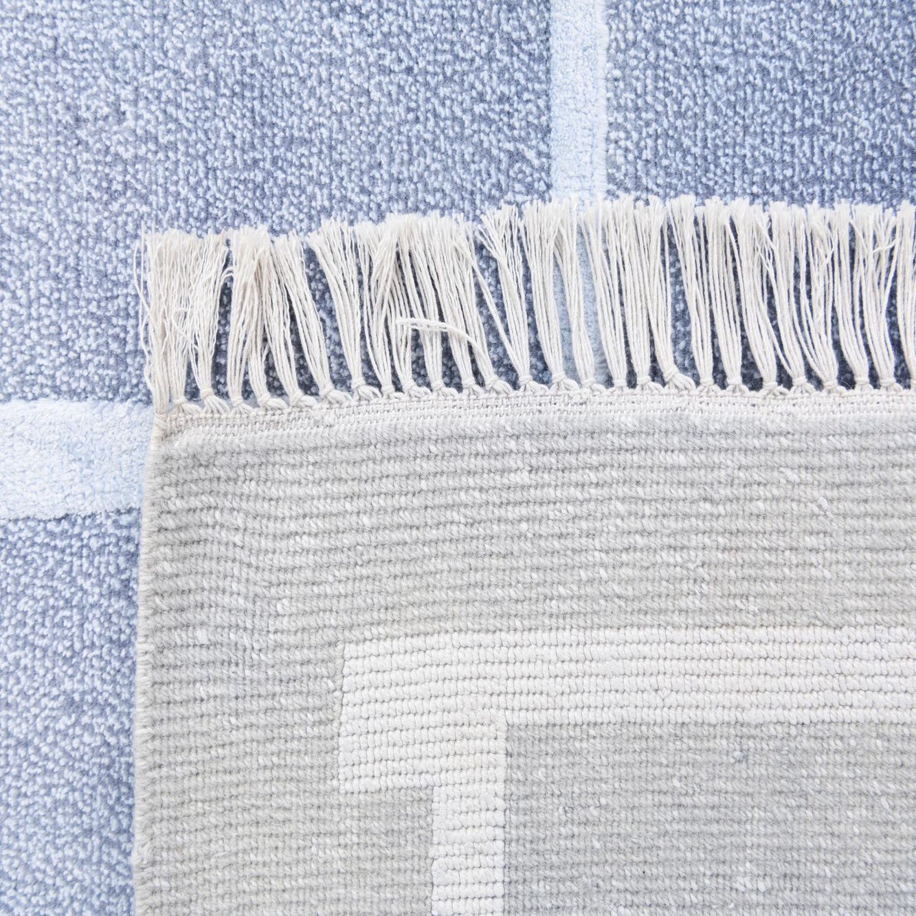 With its contemporary geometric pattern, the rug is ideally suited to complement minimalist and modern interiors, offering a subtle yet distinct accent that anchors the room's design. It would also serve well in a home office setting, providing a touch of sophistication without overwhelming the space. Additionally, the soothing blue hues make it a versatile choice for coastal-inspired decors, allowing for a tranquil and refined atmosphere.