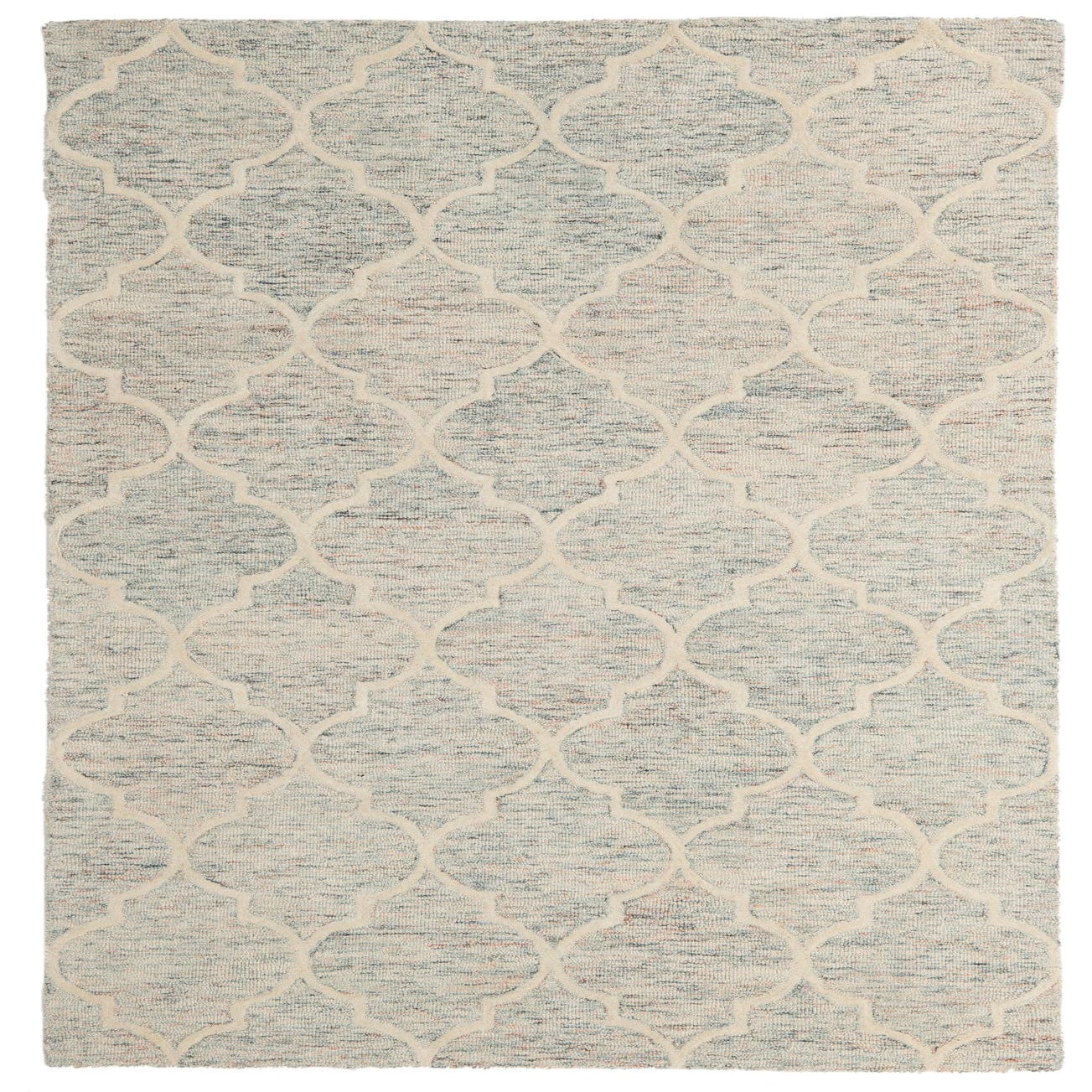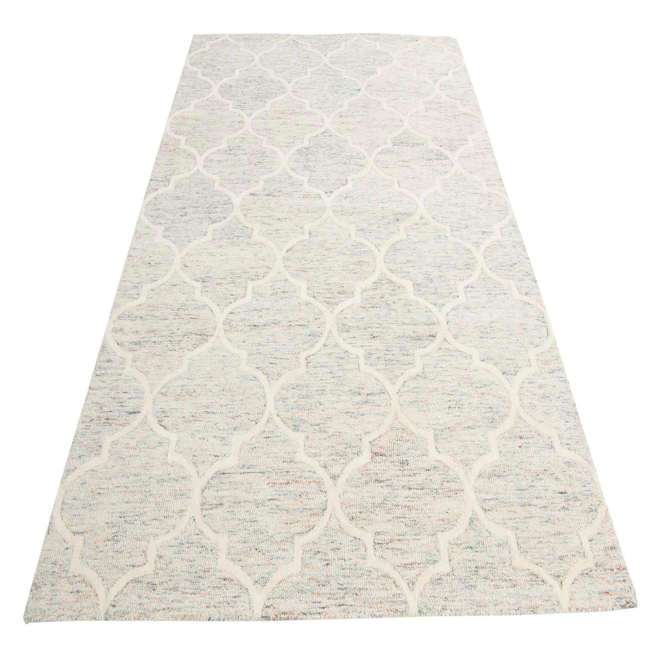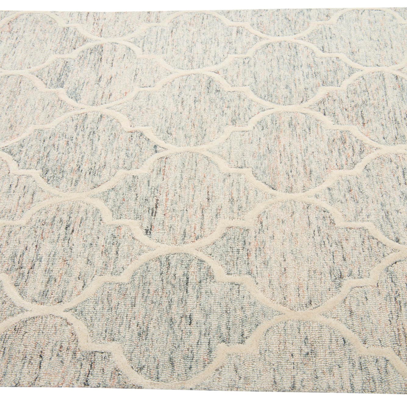 A 5x8 rectangular Luna rug by Rugs.com, featuring a modern abstract blue and ivory trellis pattern with a high pile.