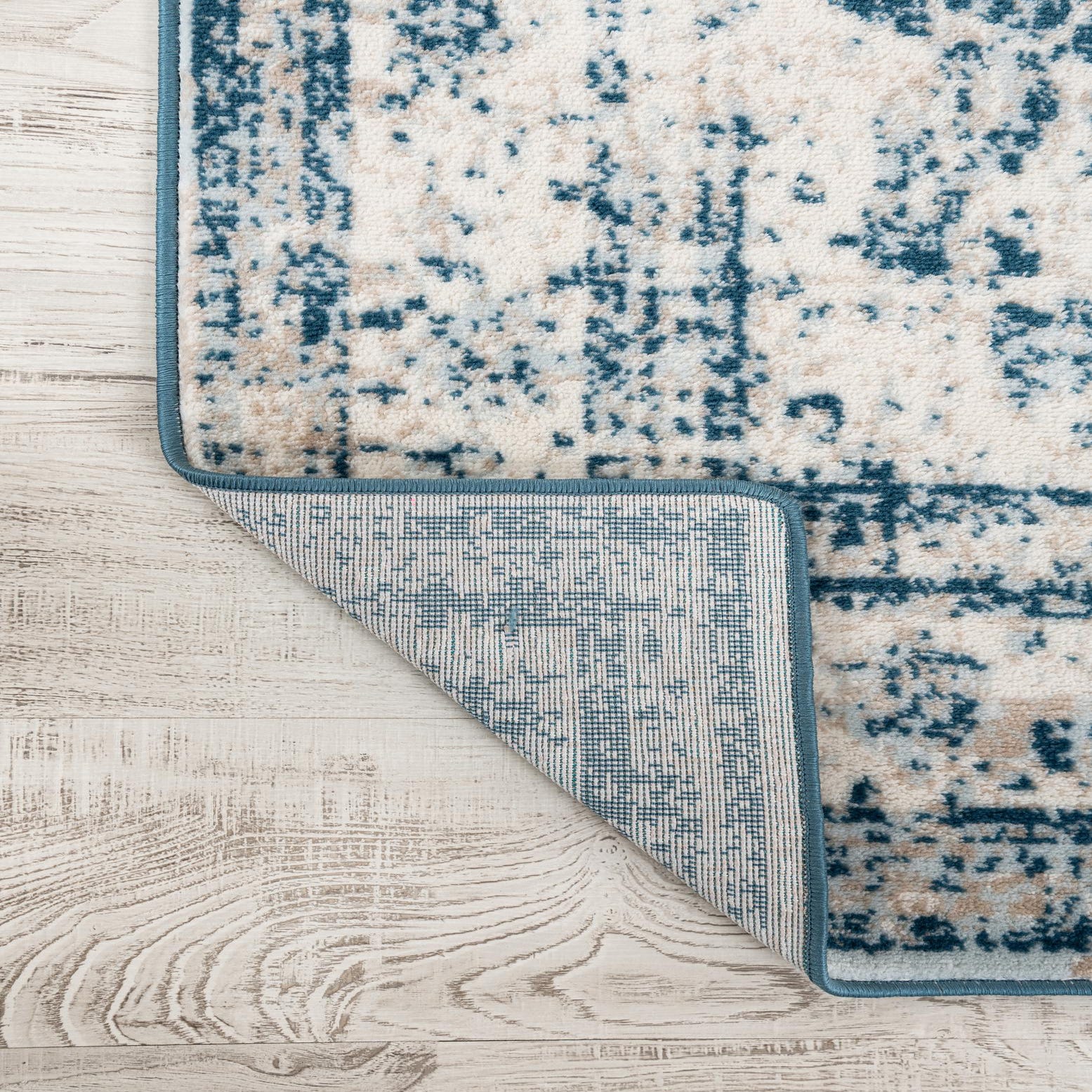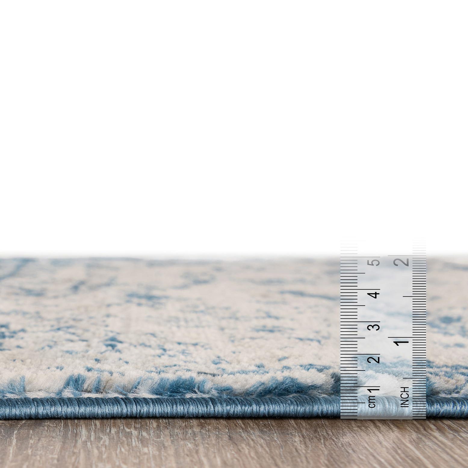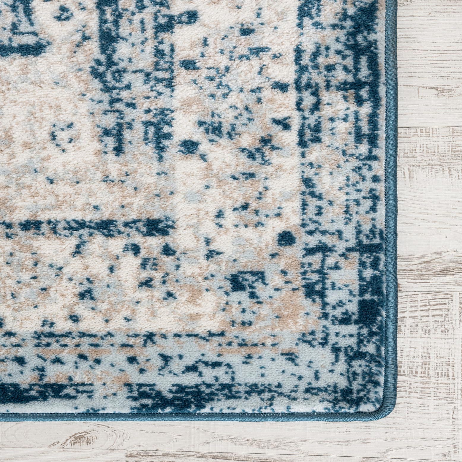 Primary color is Blue. Colors in this rug include: Blue, Beige, Ivory, Light Blue.