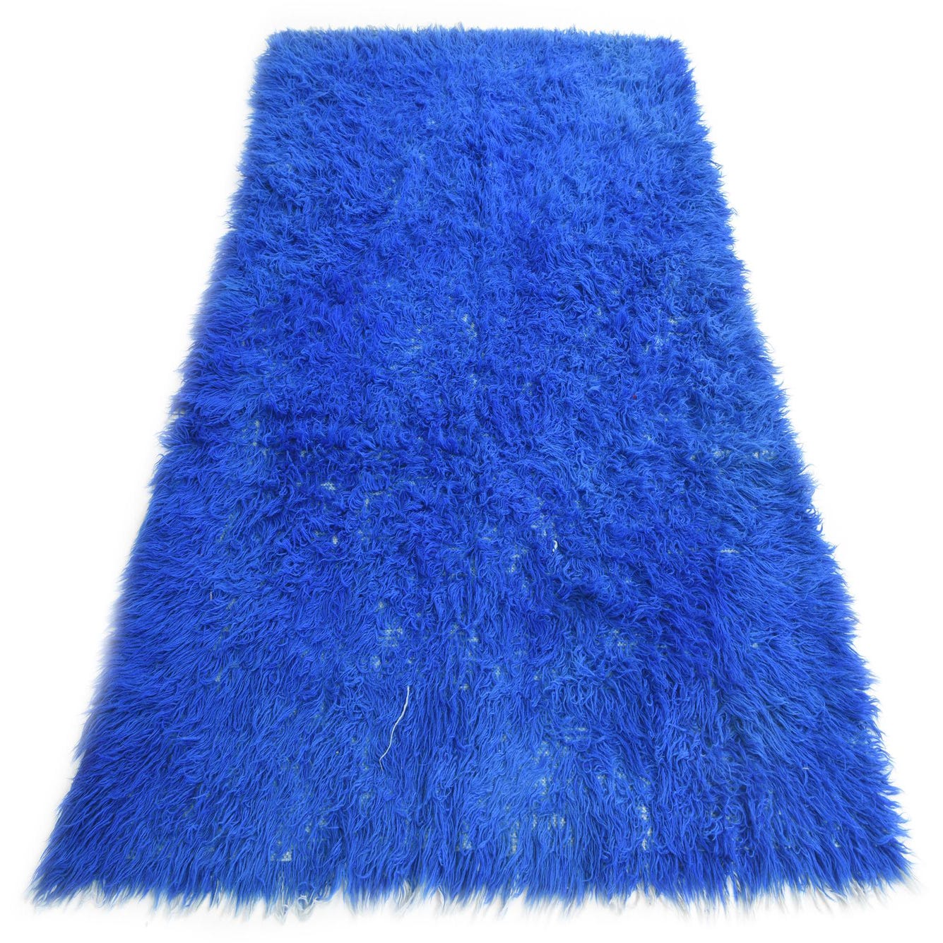 A vibrant 5x8 rectangular blue shag rug with a plush, shaggy texture, perfect for a modern living room or bedroom.