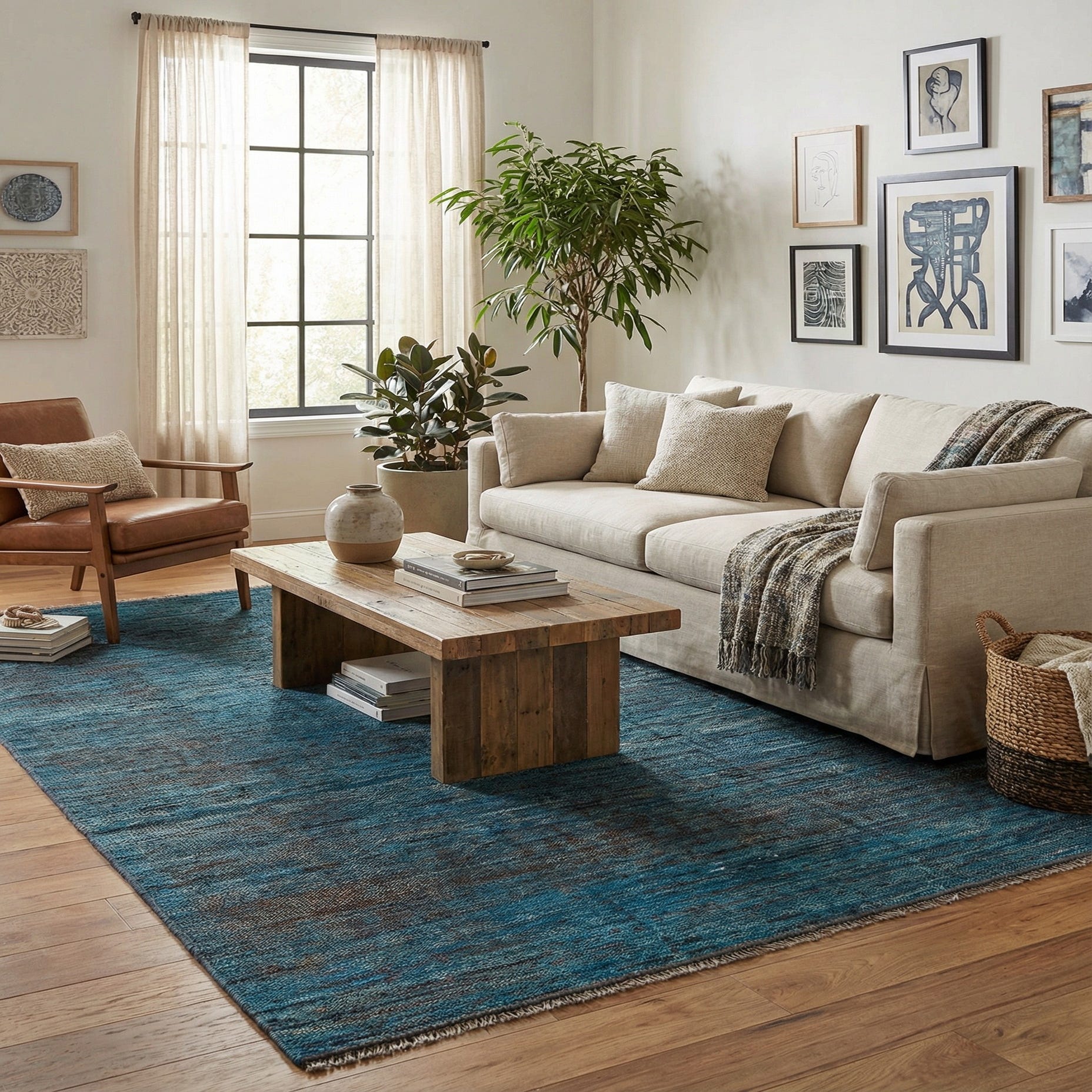Overall, this rug offers a balance of classic craftsmanship and modern design, ensuring it can enhance a range of decors from modern urban lofts to casual coastal retreats, or even a serene Scandinavian-inspired space. Its handcrafted quality and resilient material promise enduring appeal and functionality.