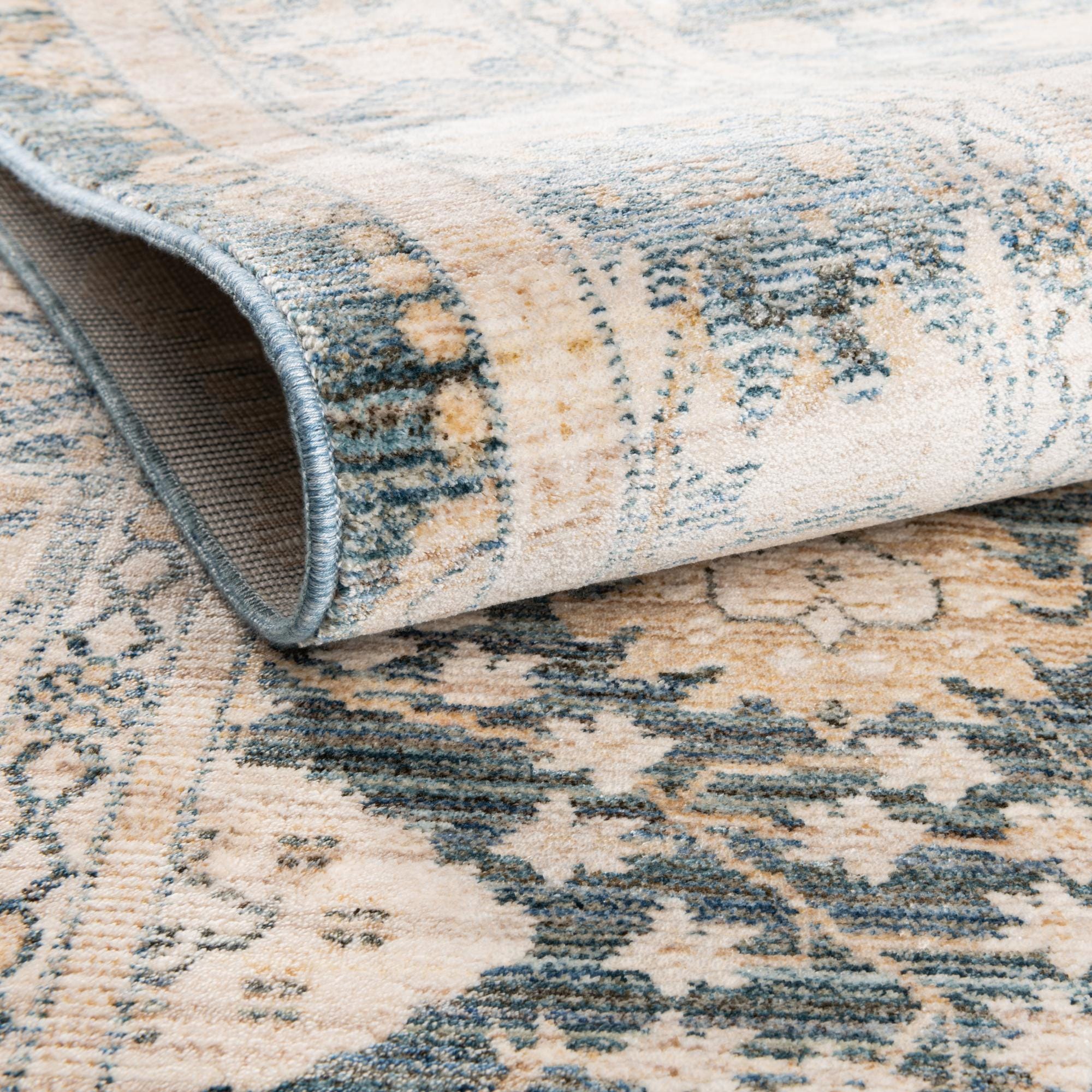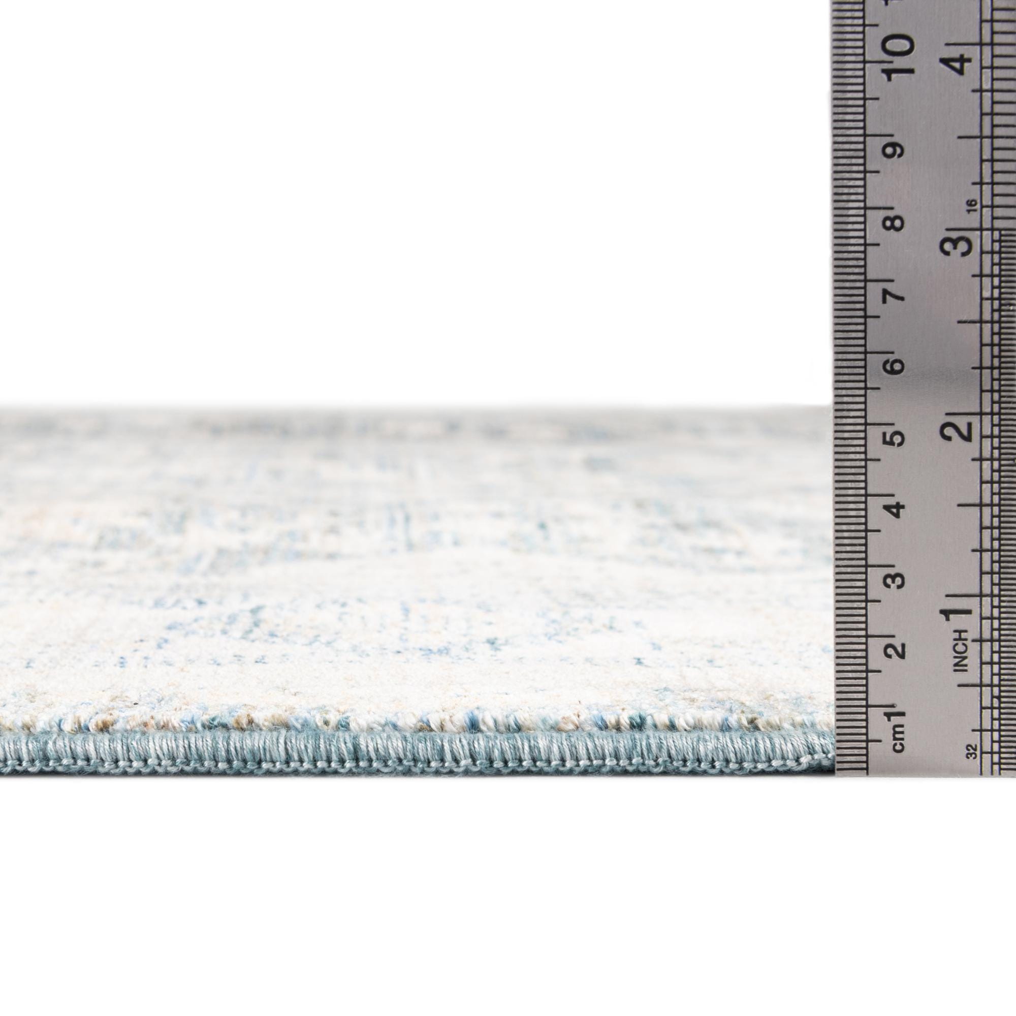 Primary color is Blue. Colors in this rug include: Blue, Beige, Ivory, Gray, Green, Black.
