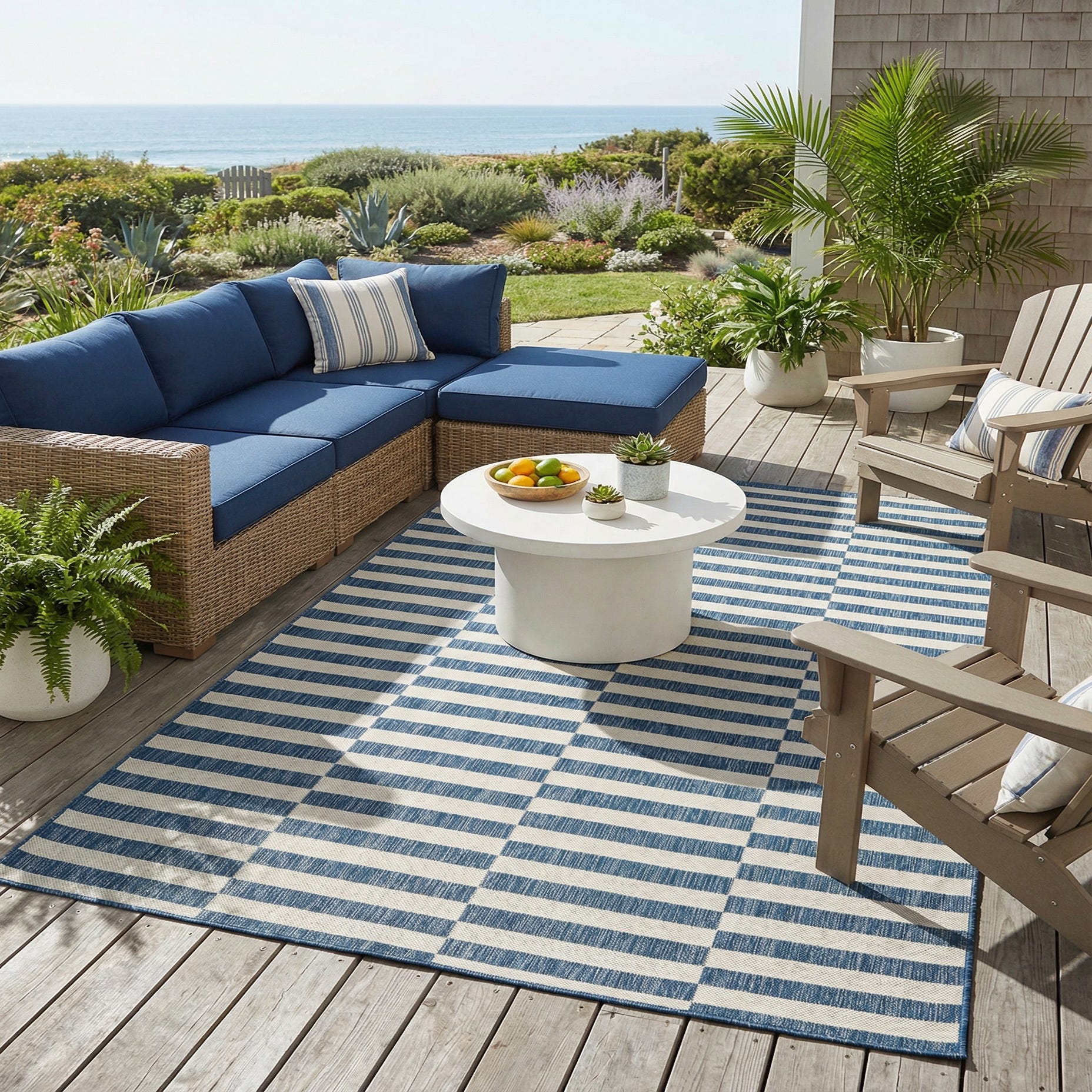 This durable, low-profile piece is well suited for covered patios, porches, entryways, or busy family rooms where a clean, tailored look is desired. Pair it with natural wood furnishings and navy or ivory textiles for a cohesive coastal or contemporary scheme, or use it to provide crisp contrast beneath a glass-top dining table or outdoor seating group.
