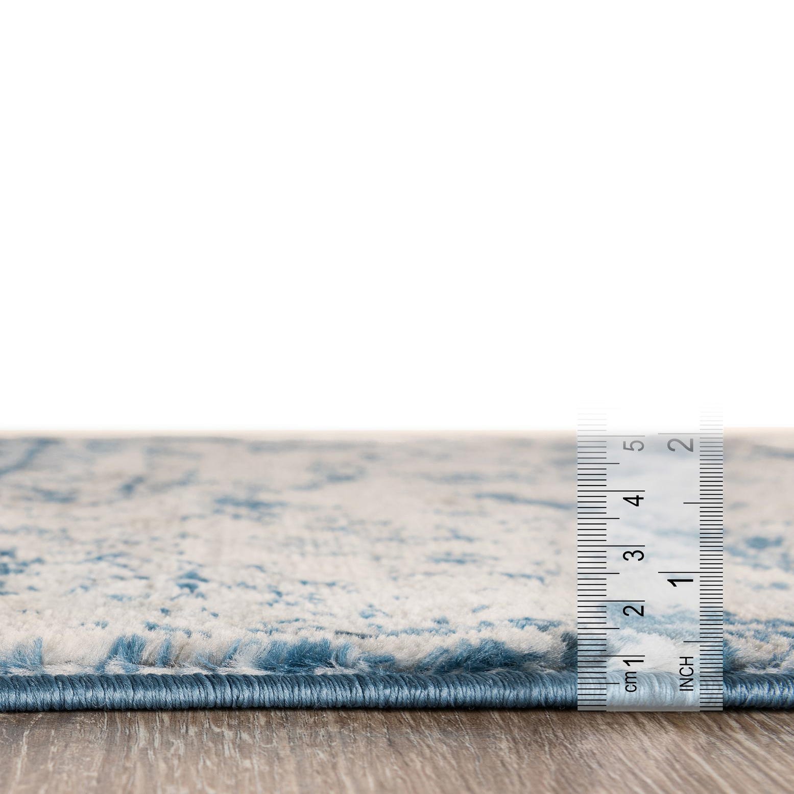 Primary color is Blue. Colors in this rug include: Blue, Beige, Ivory, Light Blue.