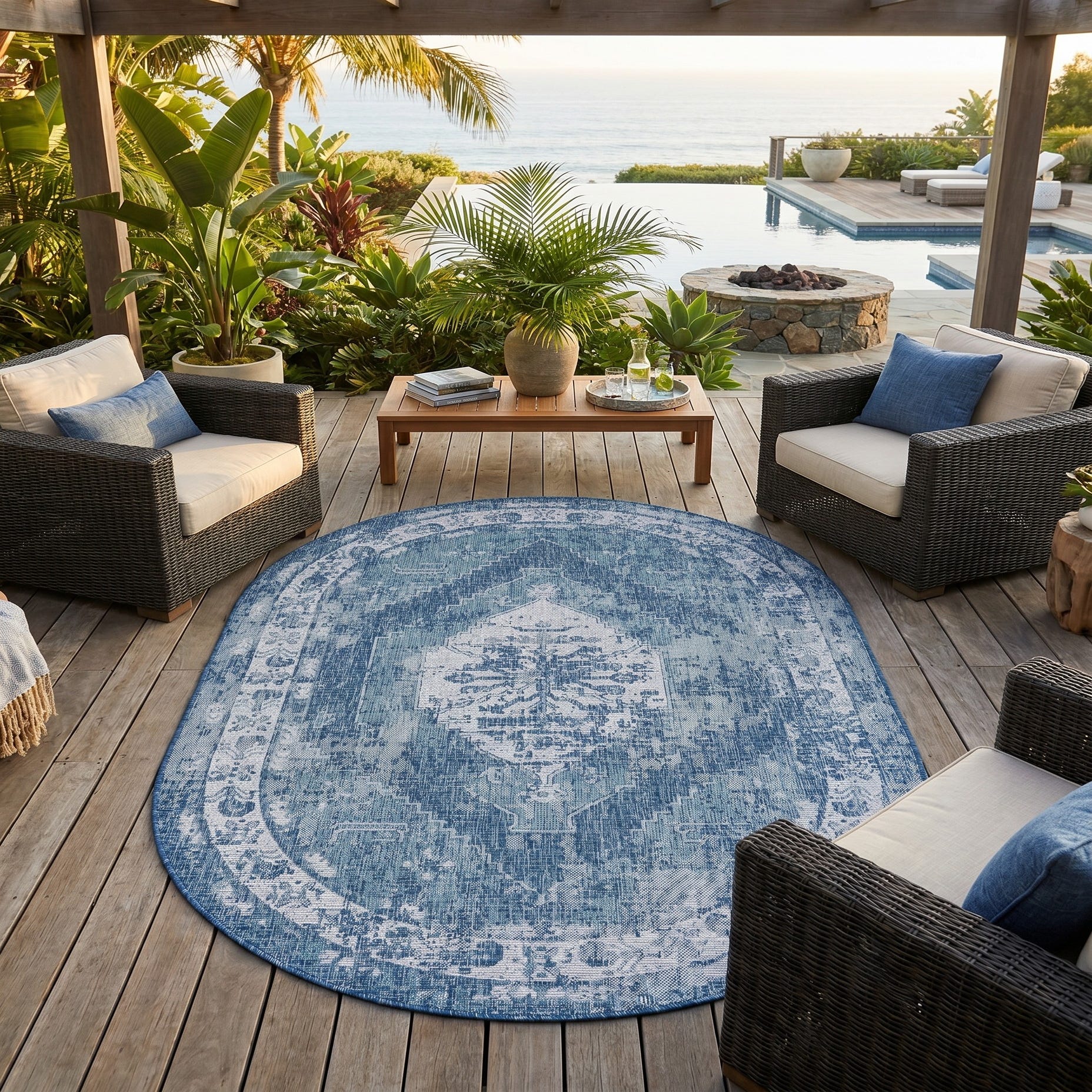 5' 3 x 8' Easy-Clean Traditional Indoor / Outdoor Oval Rug