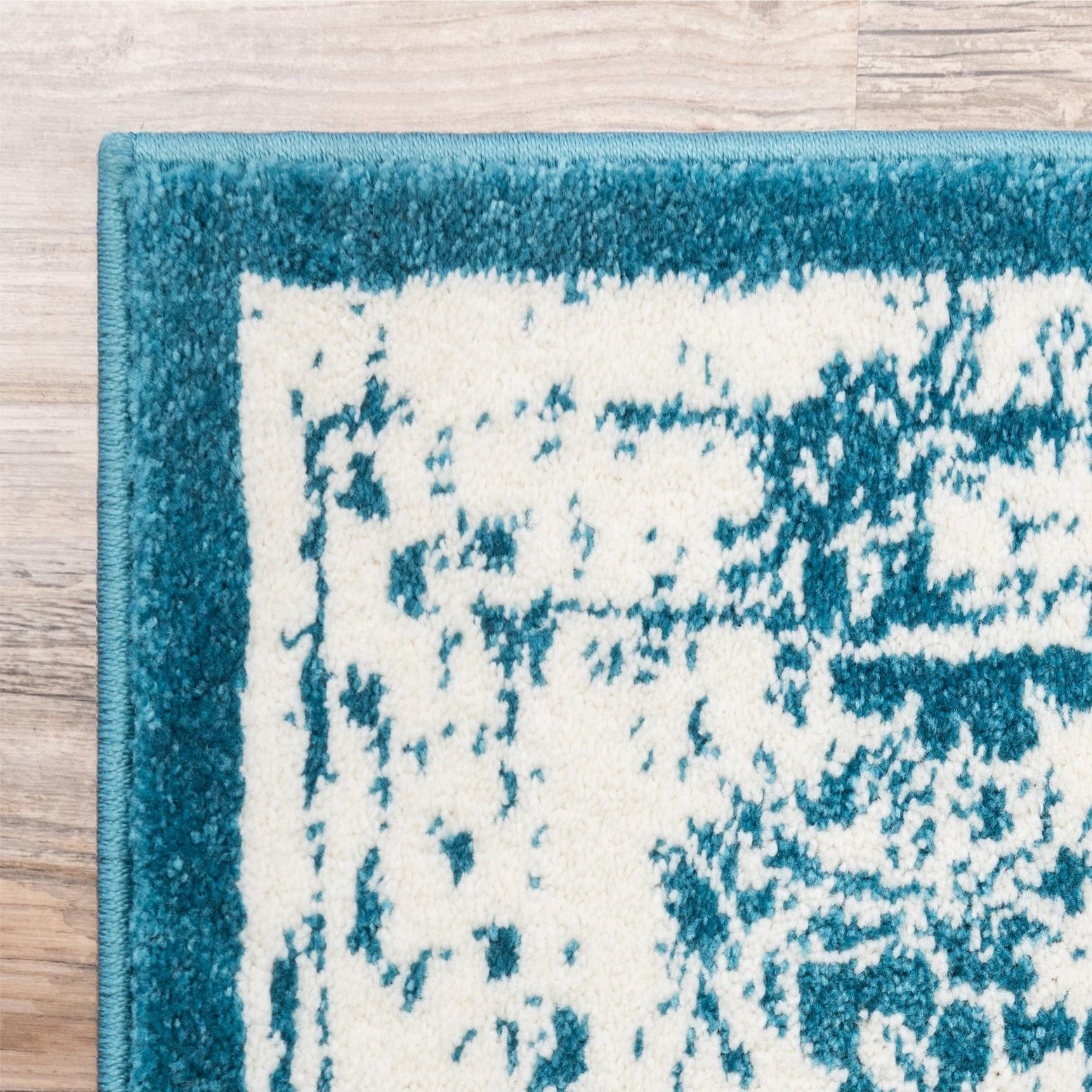 Primary color is Blue. Colors in this rug include: Blue, Ivory.