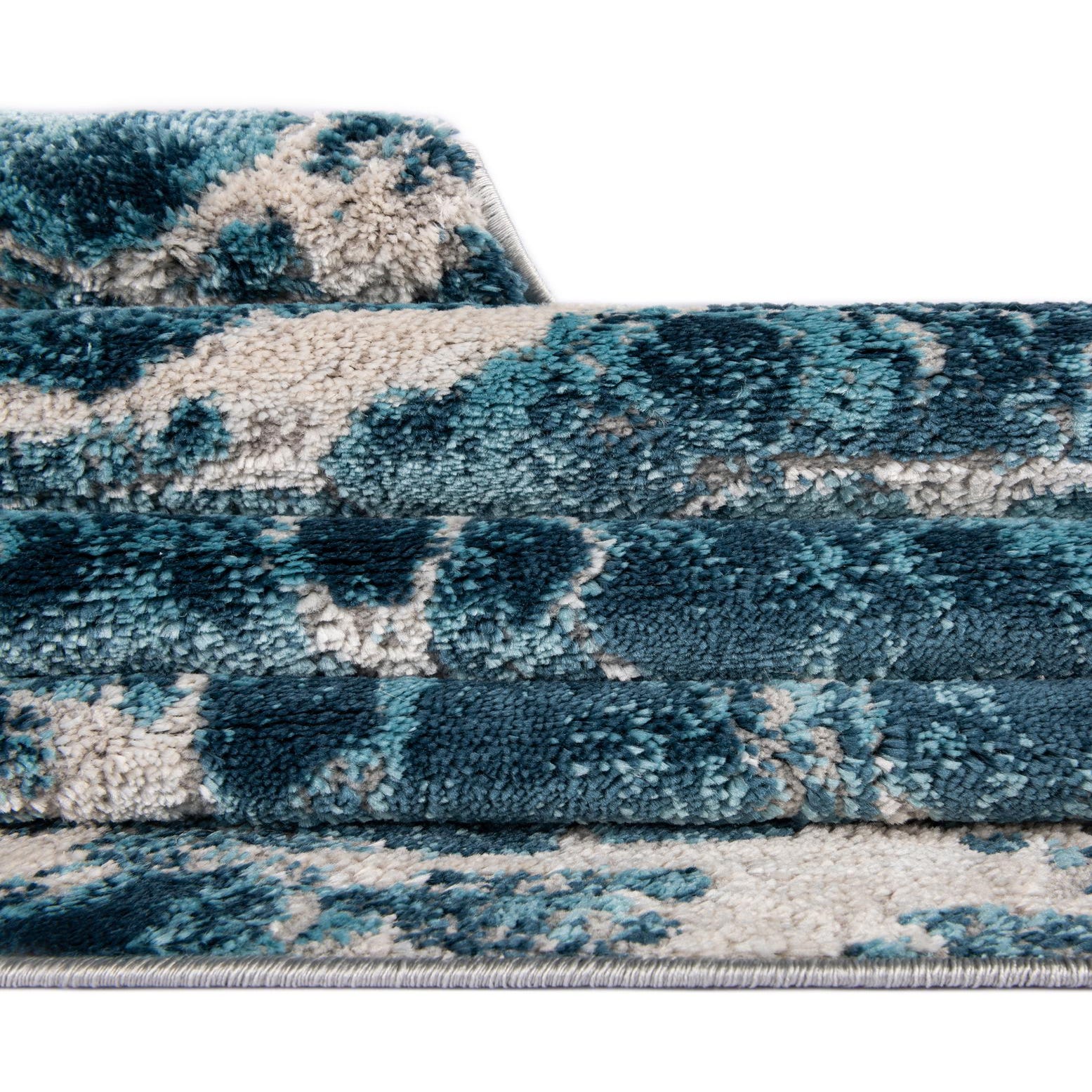 Primary color is Blue. Colors in this rug include: Blue, Gray, Ivory, Navy Blue.