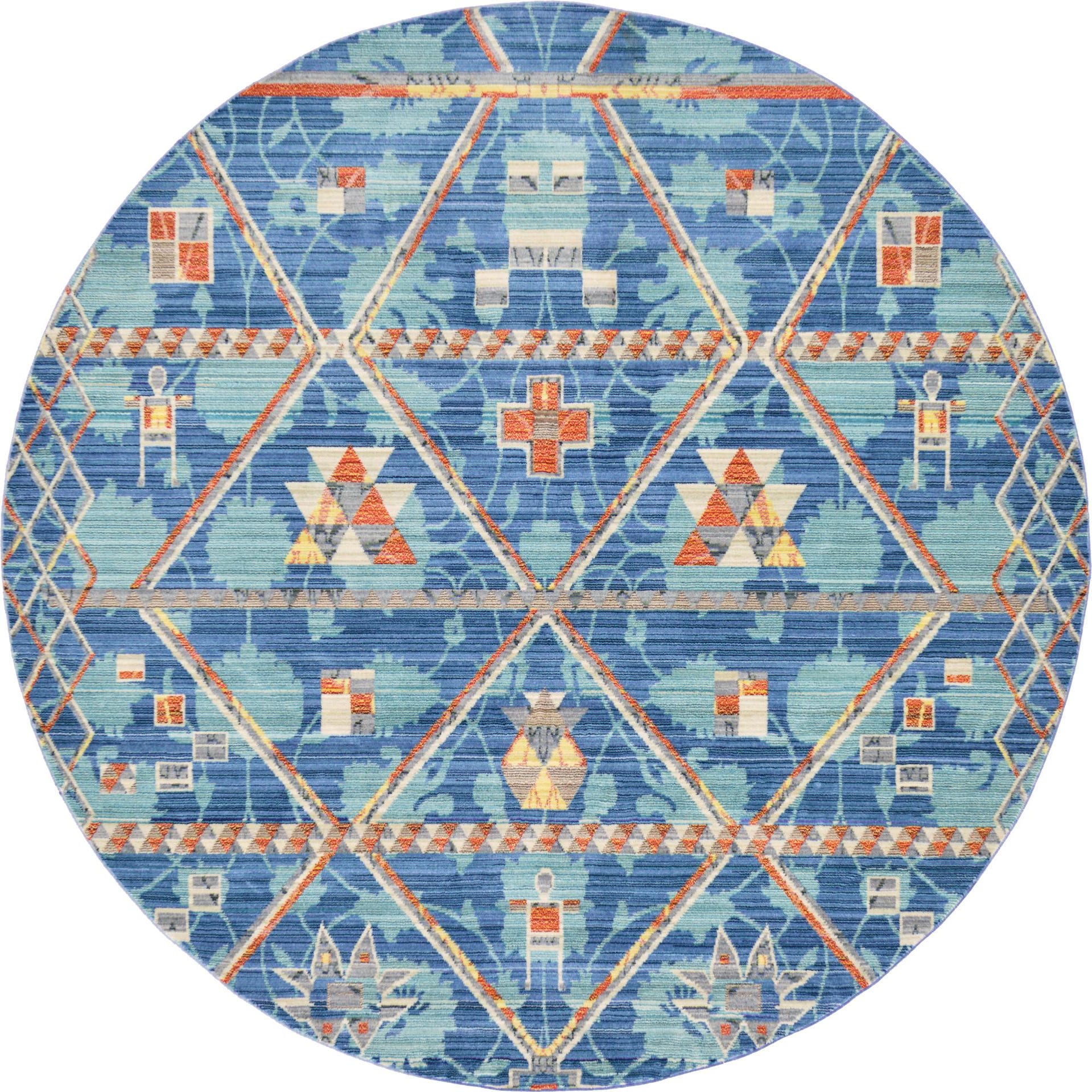 Primary color is Blue. Colors in this rug include: Blue, Ivory, Light Blue, Brown.