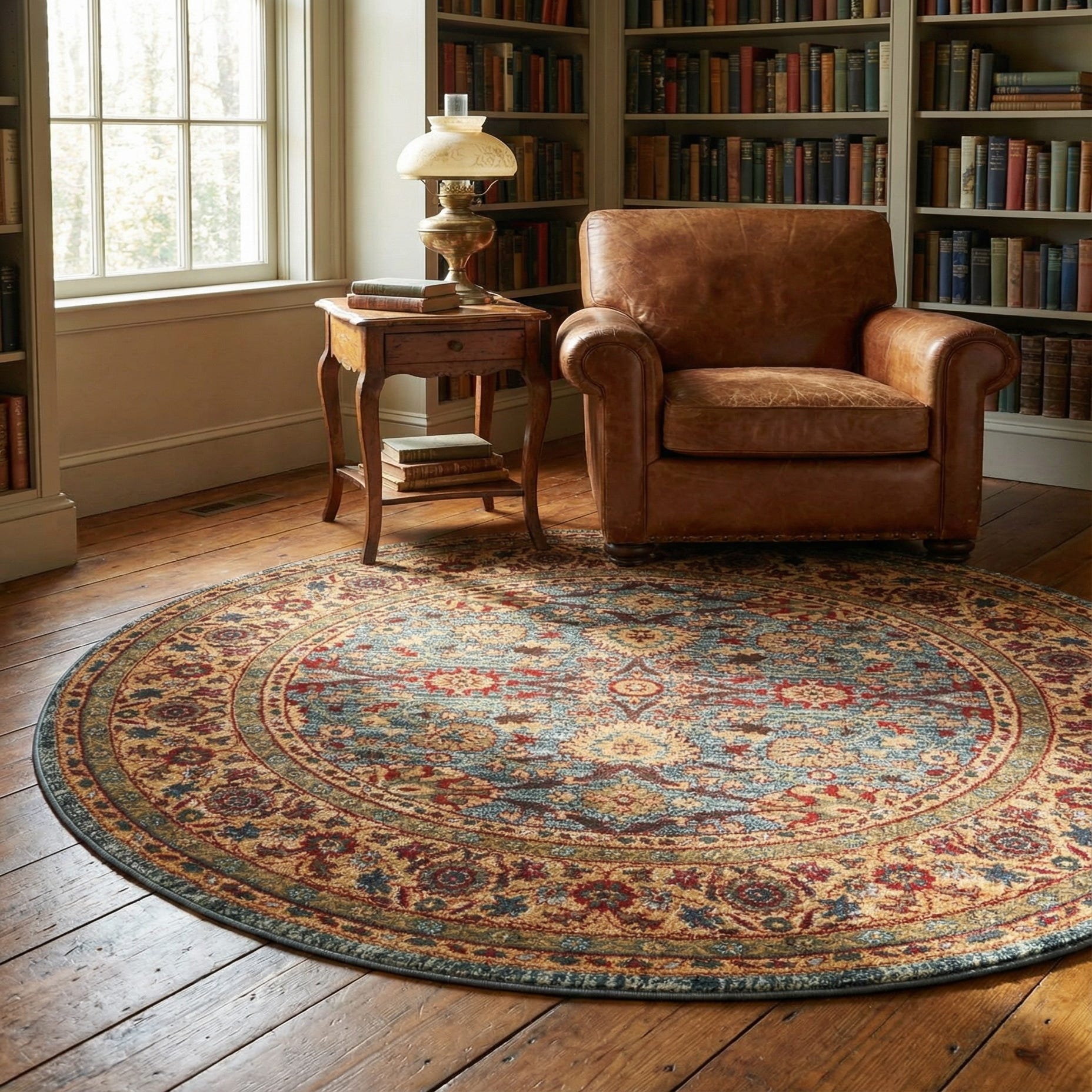 This particular piece from the Chelsea Collection would flourish in various interior design settings, fitting well within traditional, transitional, and eclectic decor. It could serve as an anchoring element in a living room beneath a coffee table, add warmth to a reading nook, or elegantly welcome guests in an entryway. Its round shape and captivating pattern cater to those looking to introduce a touch of classic elegance to their home.