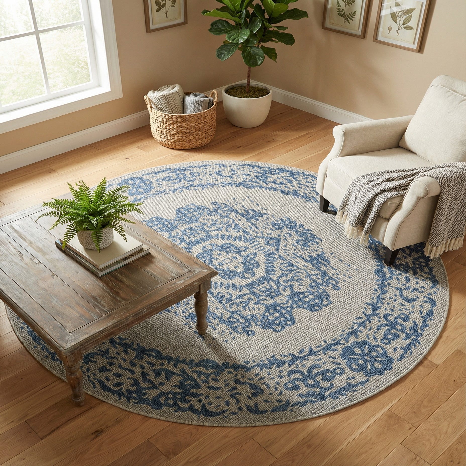 6' x 6' Washable Traditional Indoor / Outdoor Round Rug