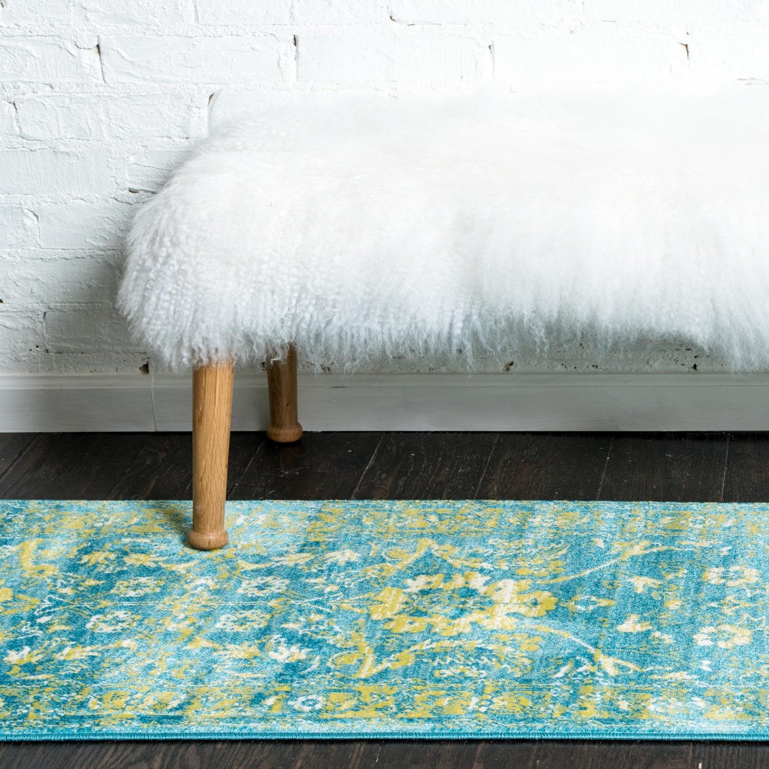 This runner works well in a bright hallway or entry to add a burst of color, alongside a bed to bring warmth and pattern to a bedroom, or in a sunlit kitchen or mudroom where durable, easy-care flooring is helpful. Pair it with white or natural wood furnishings and muted linens for a coastal-transitional look, or use it to introduce lively color into a contemporary or eclectic space.
