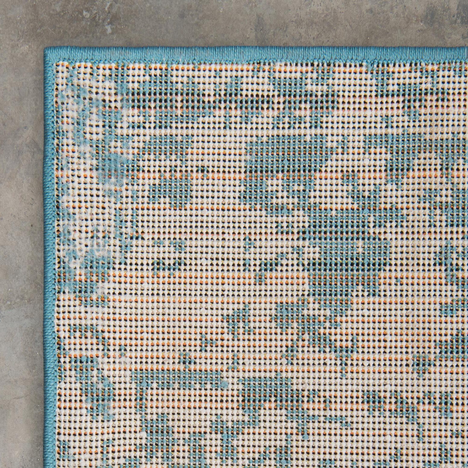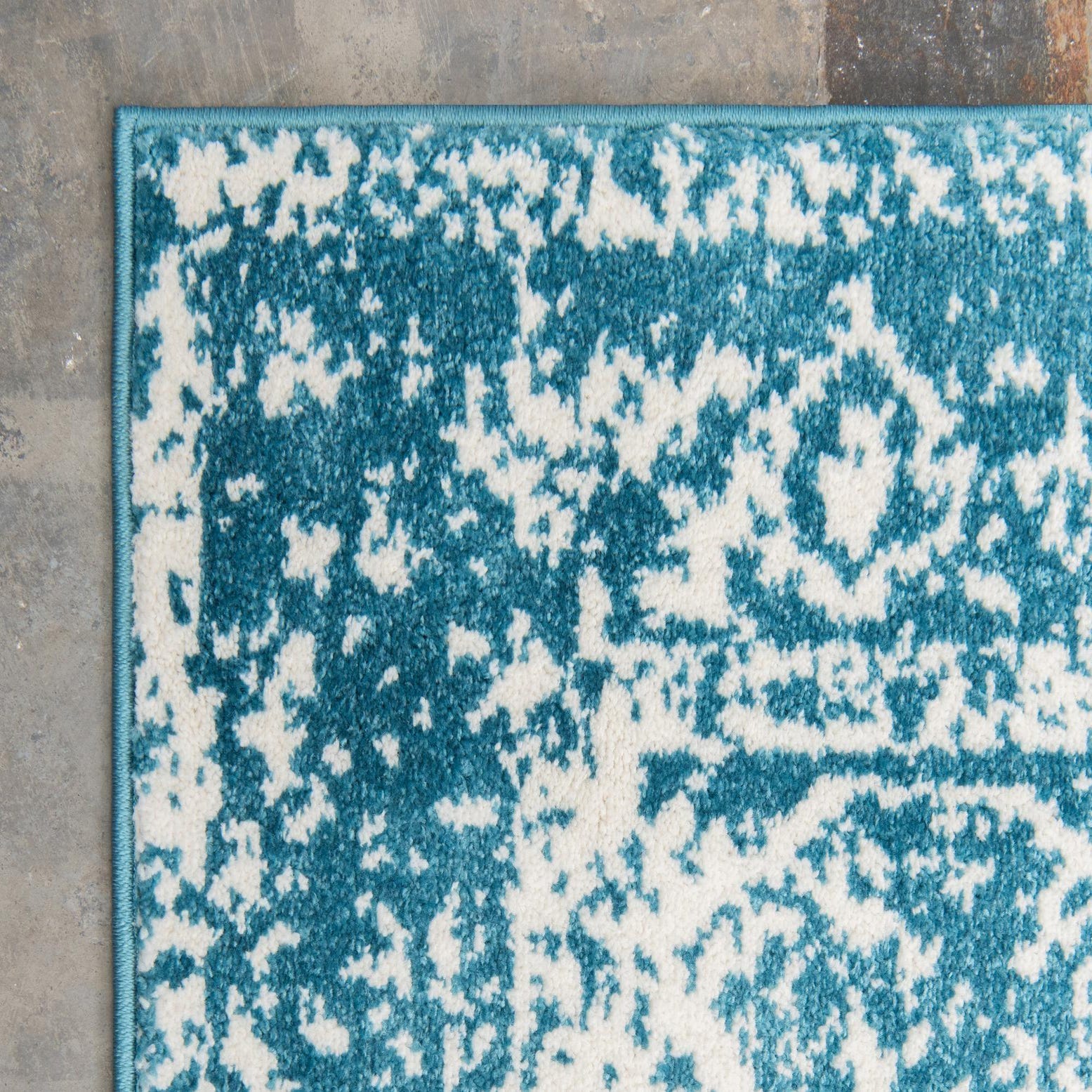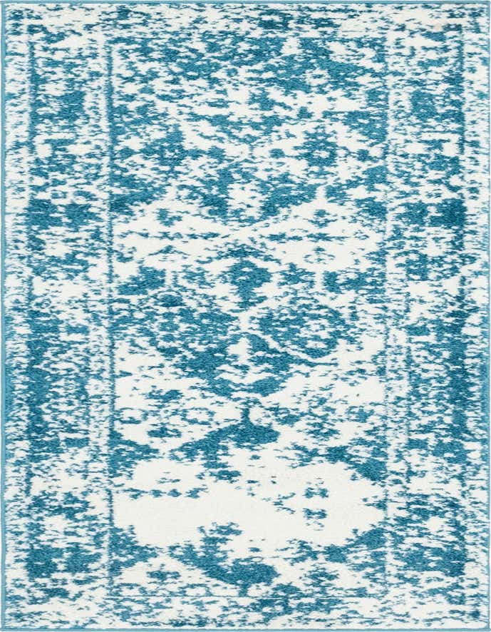 Primary color is Blue. Colors in this rug include: Blue, Ivory.