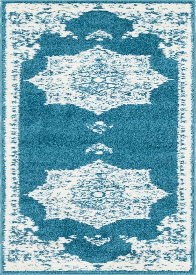 Primary color is Blue. Colors in this rug include: Blue, Ivory.