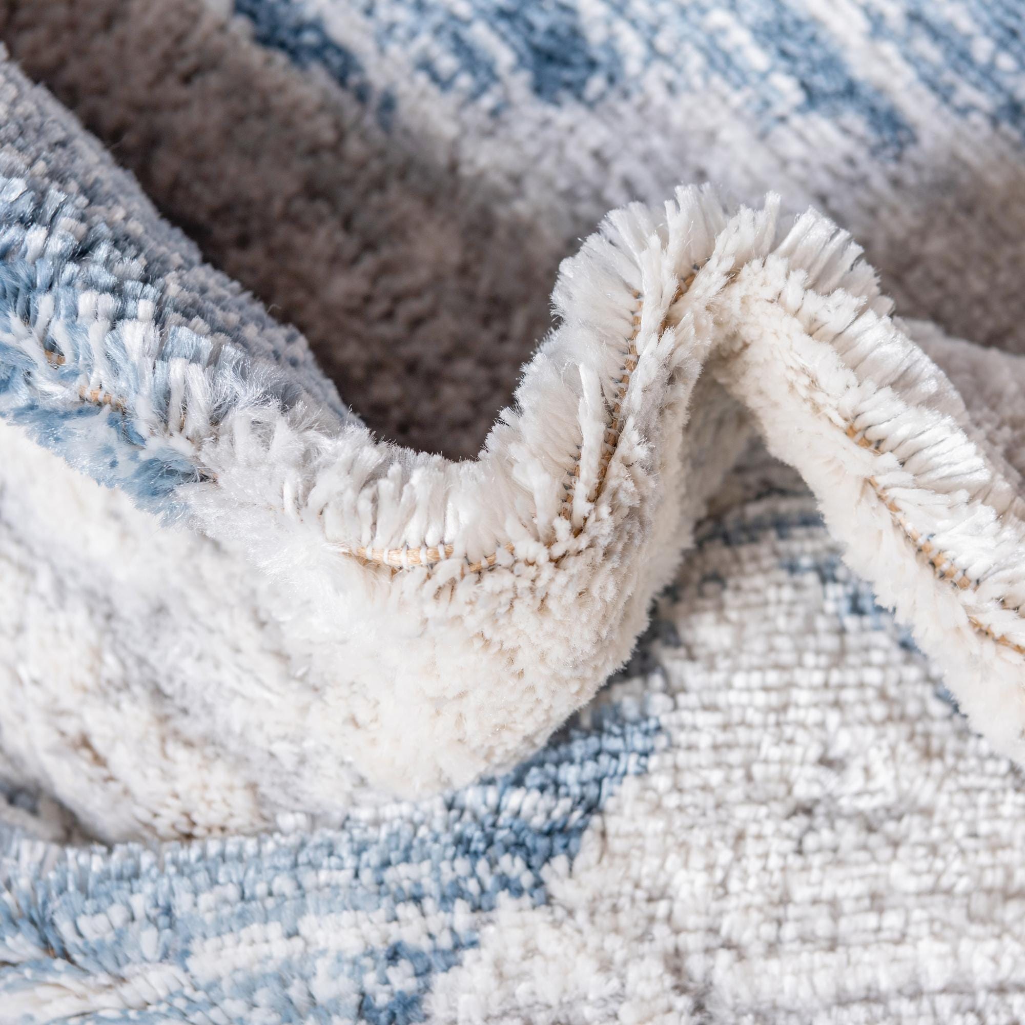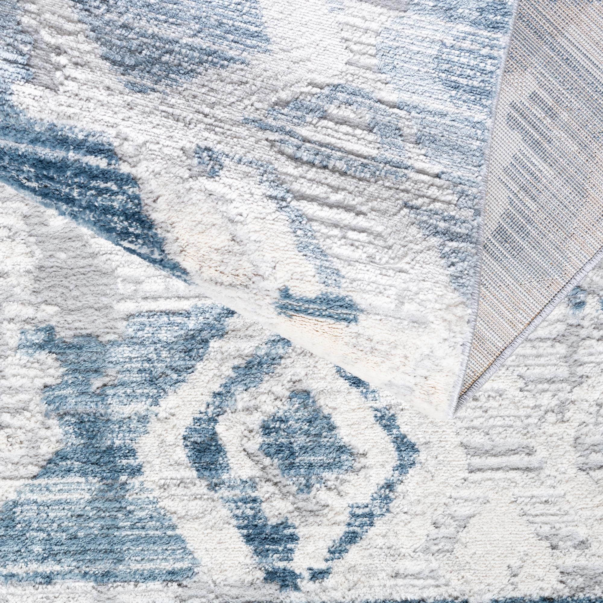 Primary color is Blue. Colors in this rug include: Blue, Gray, Ivory, Light Blue.