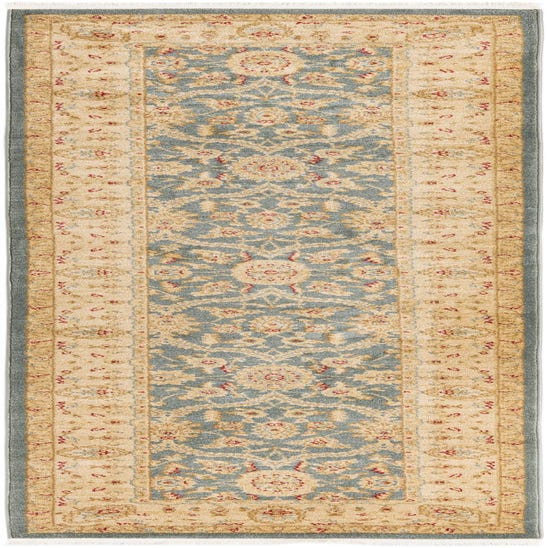 Primary color is Blue. Colors in this rug include: Blue, Beige, Red.
