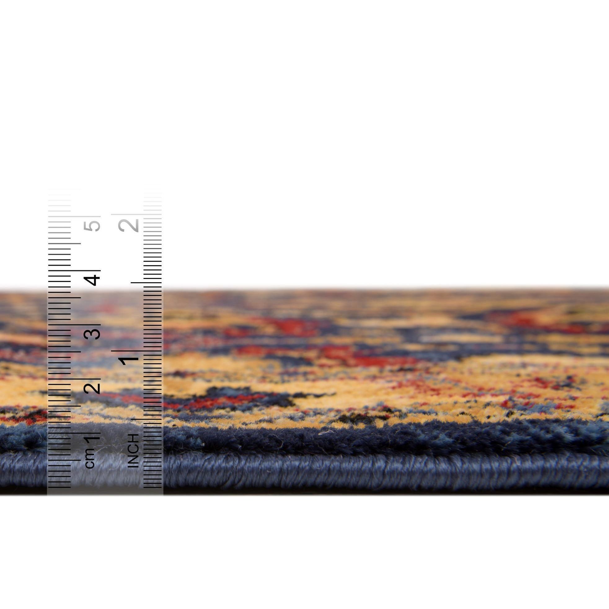 The Kennedy Collection offers a 6 Ft Runner rug that showcases a traditional design with a modern update. The piece features a deep blue background, harmoniously complemented by accents of beige, black, ivory, and red. Intricate patterns and floral motifs create a sense of timeless elegance, while the sturdy border frames the design with a final touch of sophistication.